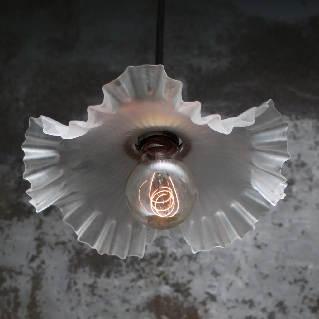 French Art Nouveau glass lampBrass bulb holder with mat glass shade.2 meter / 80 inches black cotton wire.Weight: 0.30 kg / 0.7 lbPriced per individual item. All lamps have been made suitable by international standards for incandescent light bulbs, energy-efficient and LED bulbs. The new wiring is CE certified or UL listed. 100% safe. They can be set in operation immediately. Contact us for shipping prices for larger quantities. Excluding light bulb.