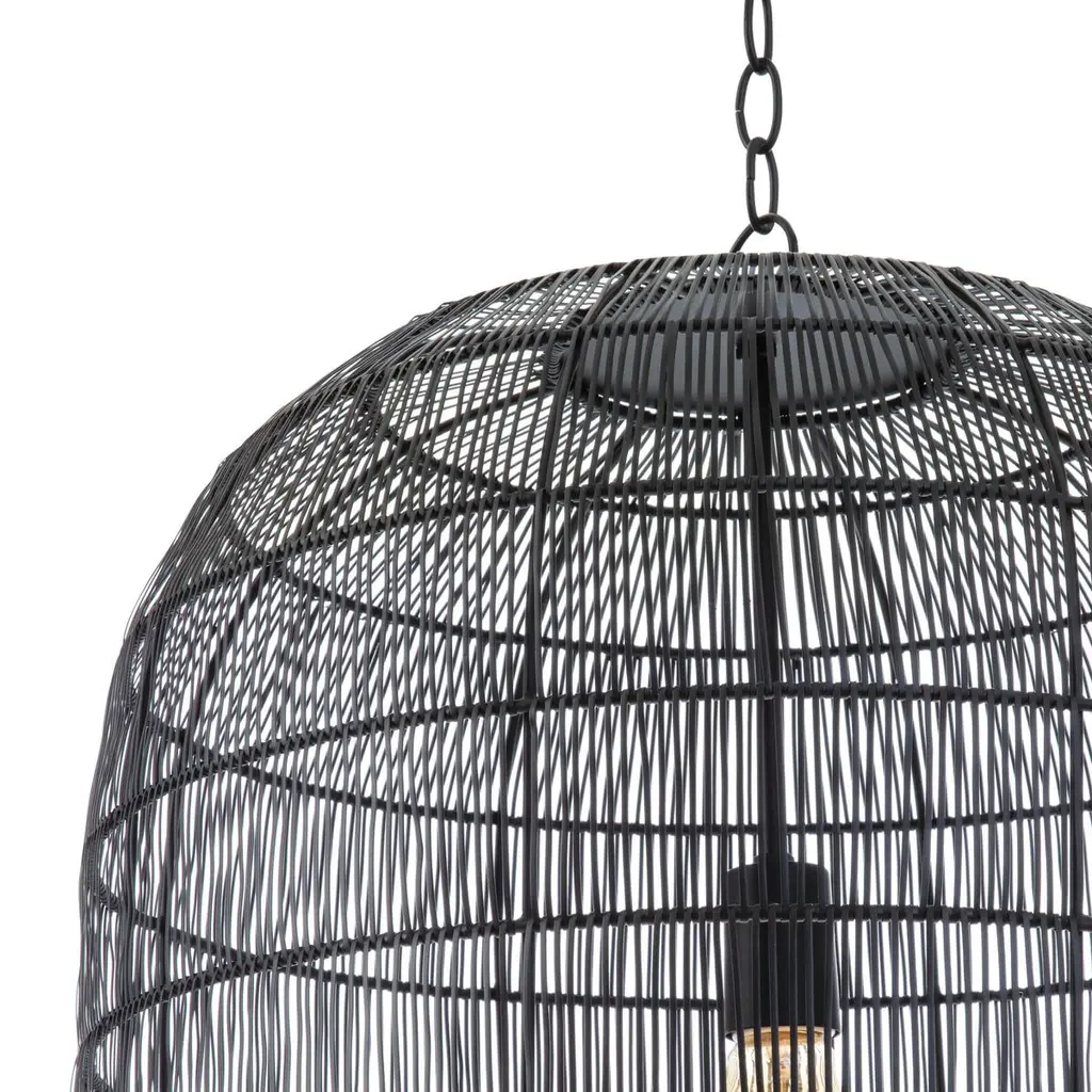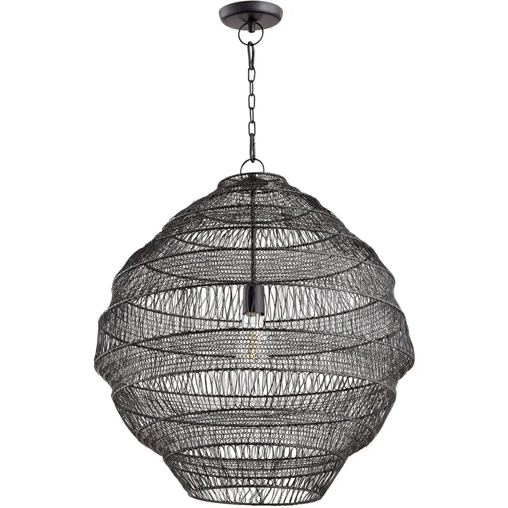 The Fresco Metal Pendant is fabricated of iron that has been expertly fashioned to give a light and airy appearance. The woven metal basket creates interesting light play when lit and functions as a lovely sculptural piece when not. Place this fixture over a dining table, kitchen island or accent a corner of a living room or bedroom with the warm glow of this organic beauty. Hardwired.