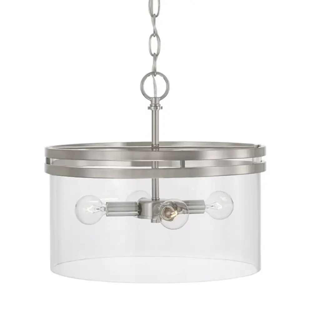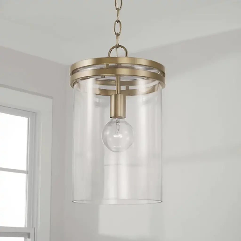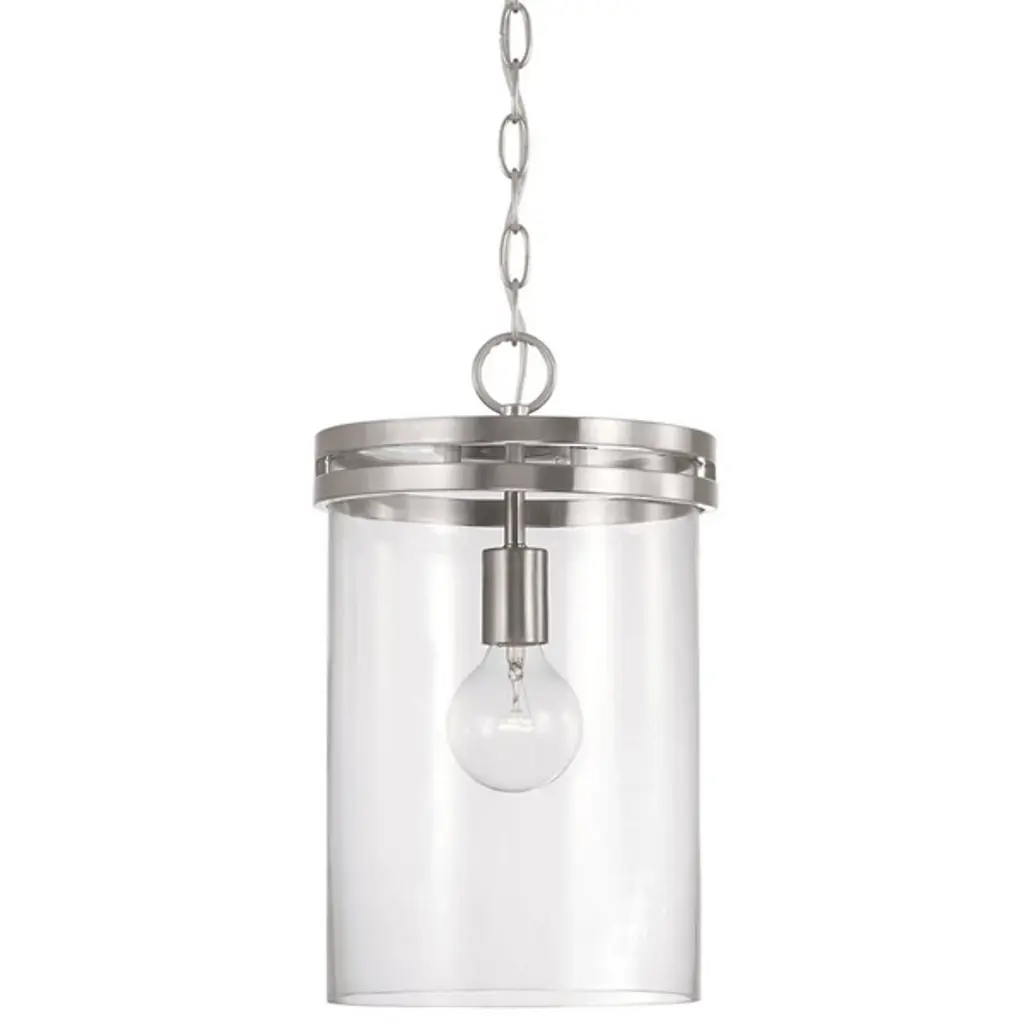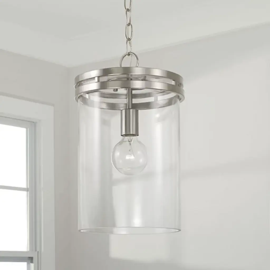 Give your interior design plan an art deco appearance with the Fuller Pendant by Capital Lighting. Fine lines are paired with a clear glass shade and metal framework, creating a look of sophistication. A chain of links secures to a ceiling canopy which allows your pendant to easily maintain suspension in midair.