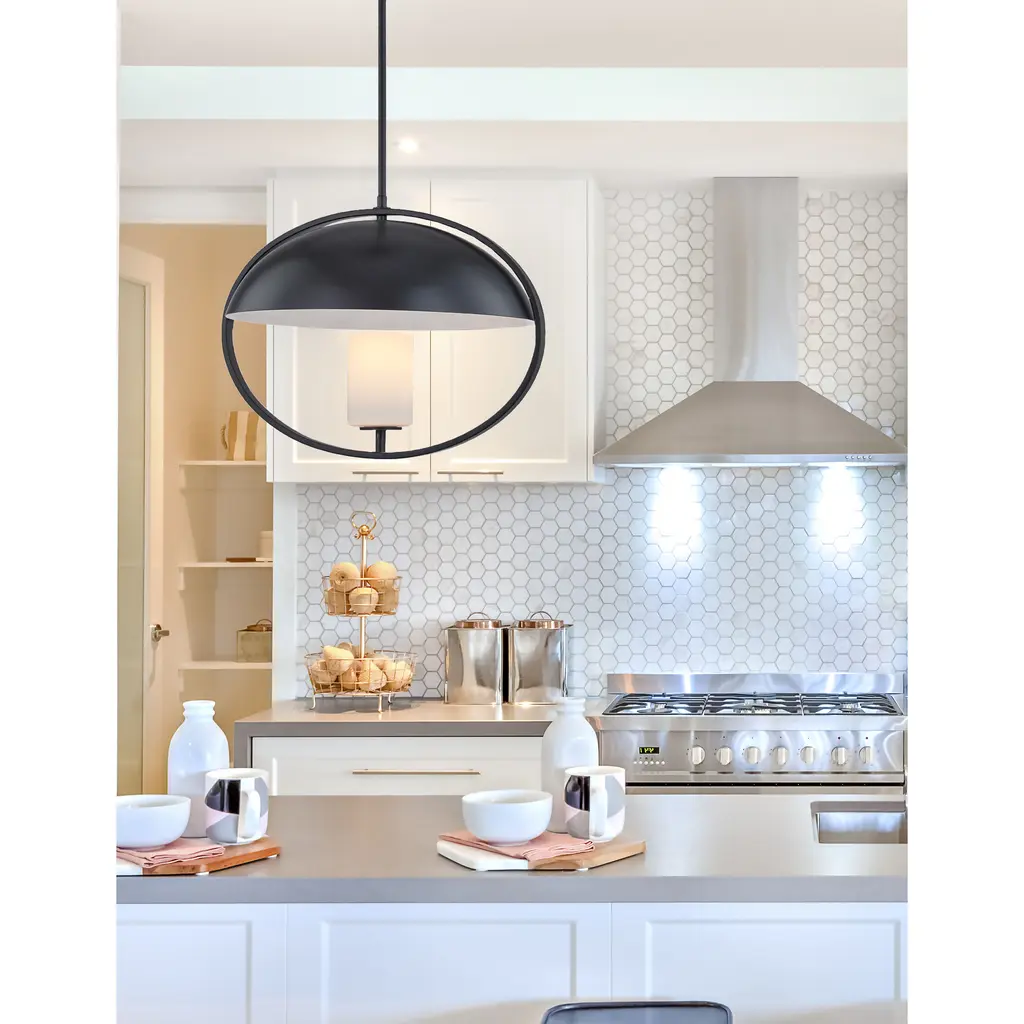 Fusion 1 Light 20 Inch Matte Black And Opal Pendant Ceiling Light