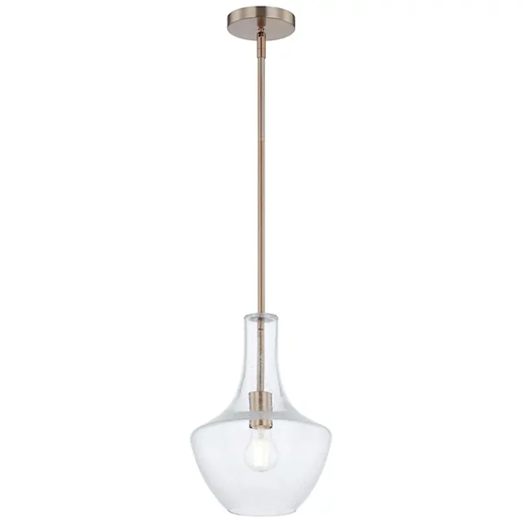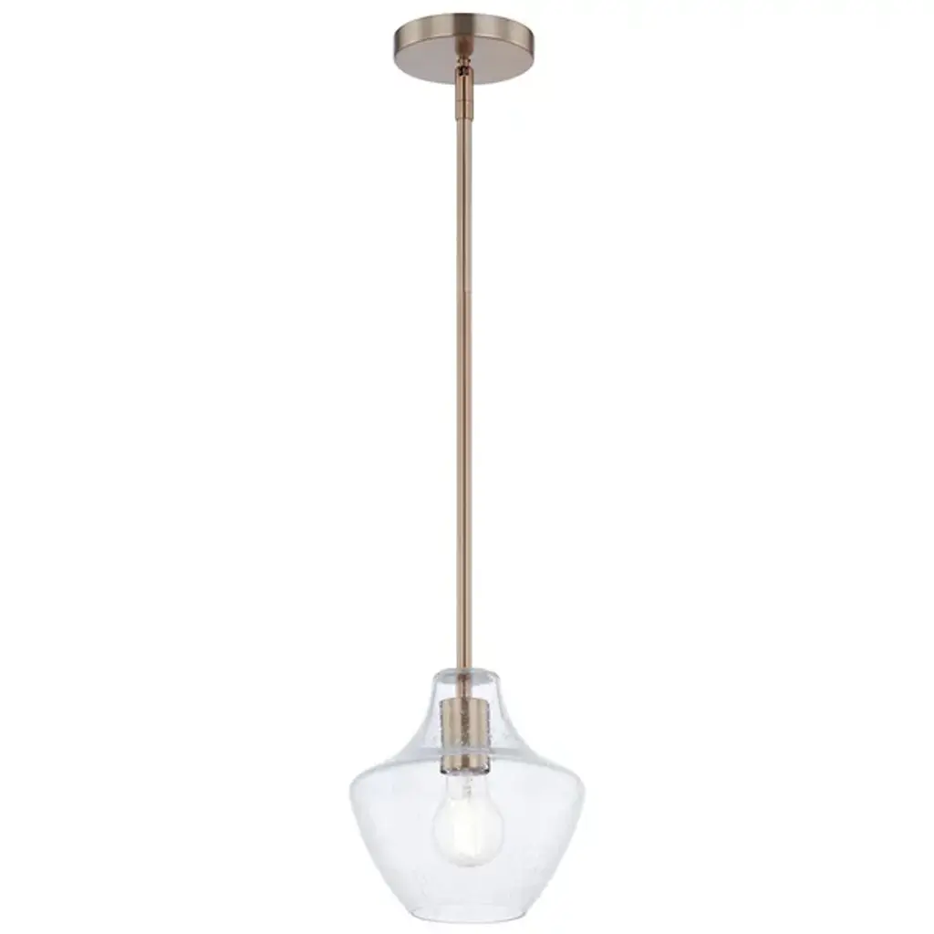 The Fusion Harlow Pendant by Justice Design Group brings a touch of modern elegance to your home. Crafted with artisan glass and metal, this pendant fits perfectly in a variety of spaces, such as your living room, hallway, entryway, dining room, kitchen, bedroom, or office. With an empire shade and a unique shape, this pendant adds a contemporary touch that harmonizes with your home's aesthetics. The product is UL and ETL rated, providing assurance of its quality and safety standards.