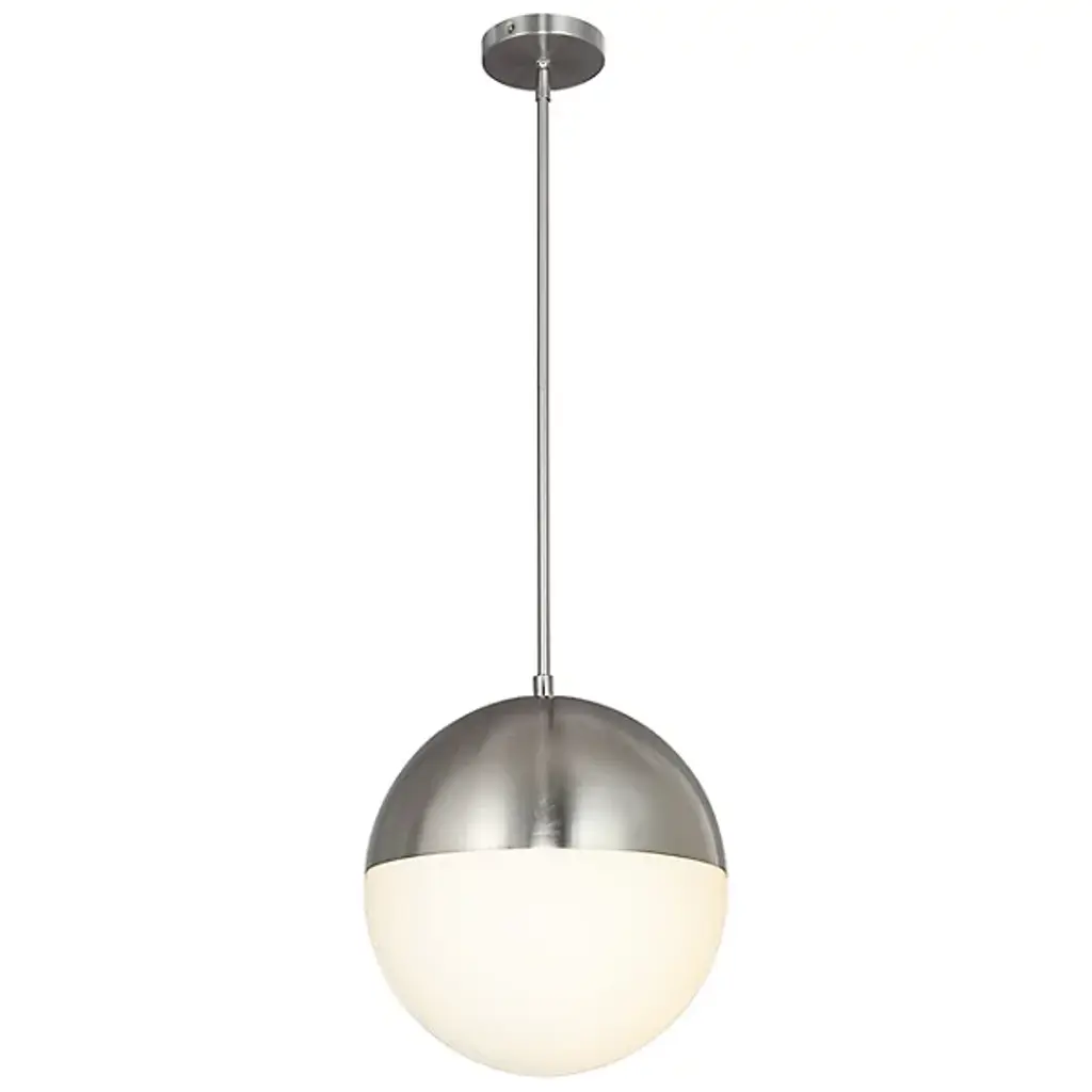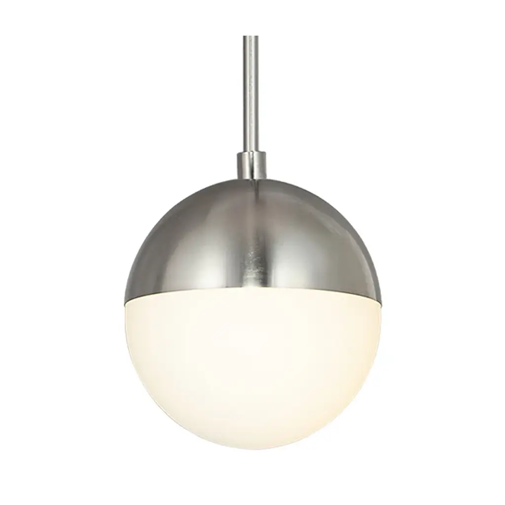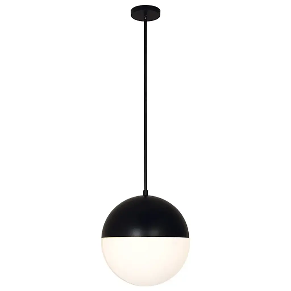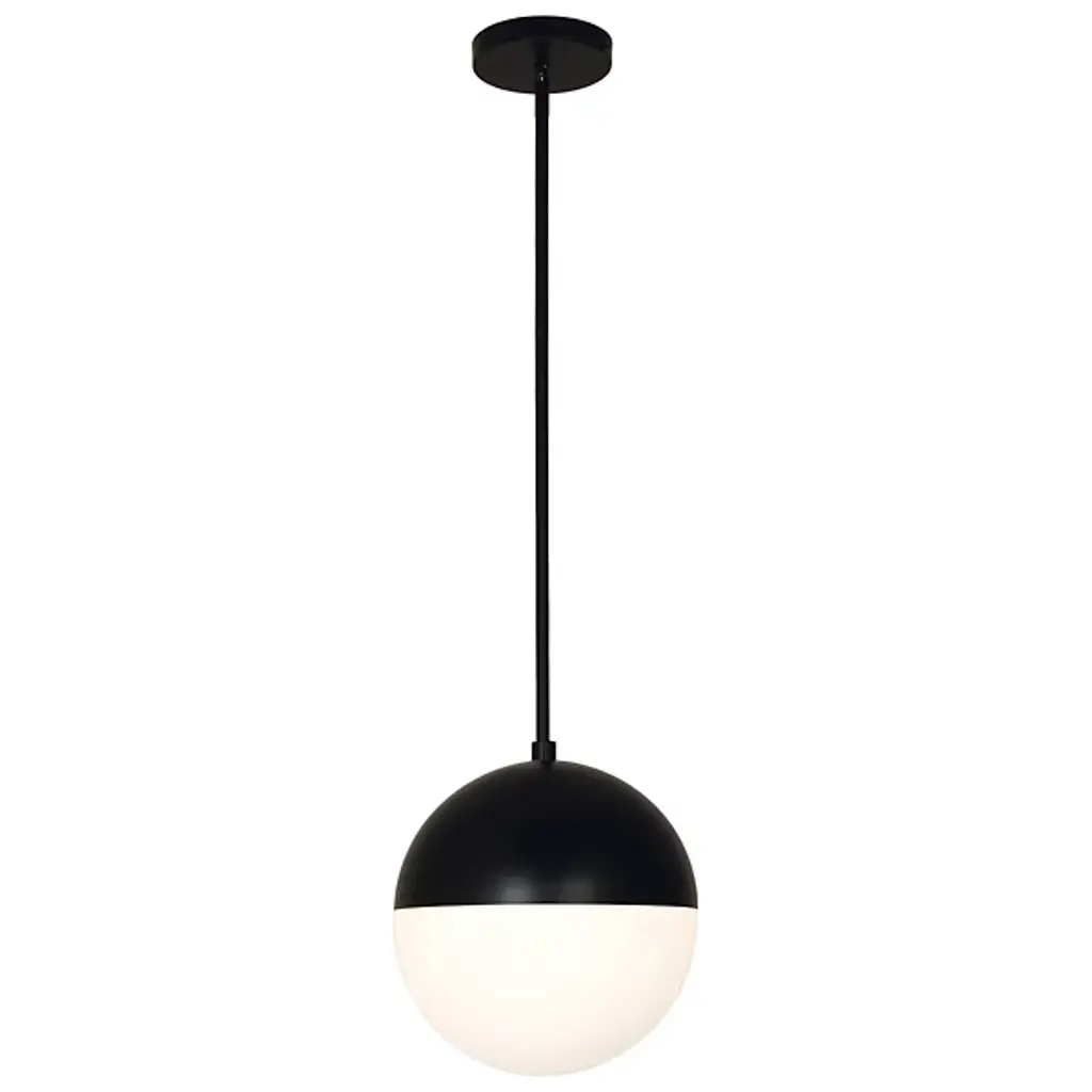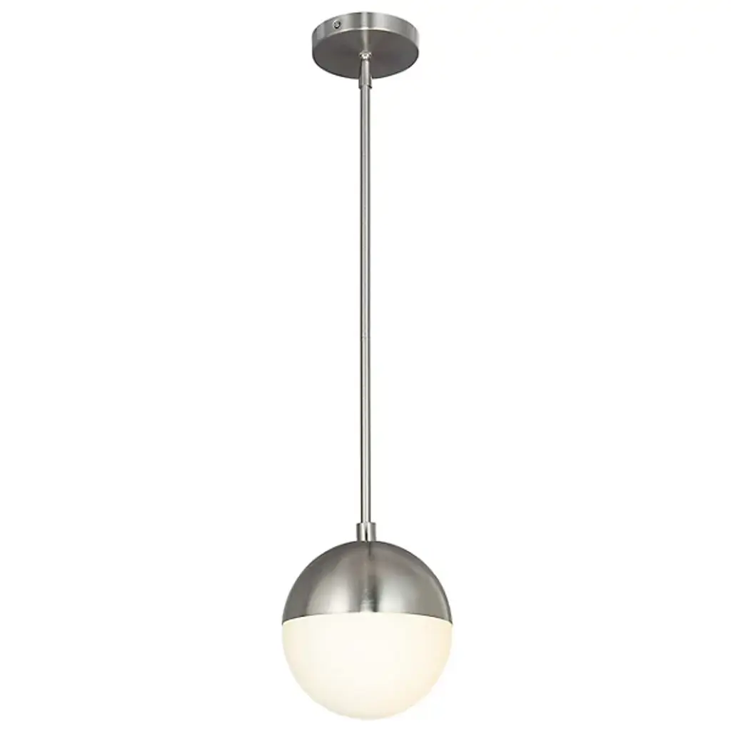 A timeless classic with a modern edge. Exceedingly minimalist in its form, the Fusion Ion Pendant proves that less is more. An globe-shaped Artisan Glass shade is accented by a Metal frame in this contemporary design. The illumination coming through the shade is diffused beautifully, making this piece the perfect addition for brightening up any area of the house. From the foyer to the bedroom, this hanging fixture will be a versatile workhorse with enduring minimalist style. Whether it's mounted on its own or in a series, it effortlessly complements contemporary decor and furnishings but also looks great with transitional pieces. It also can accommodate sloped ceilings.