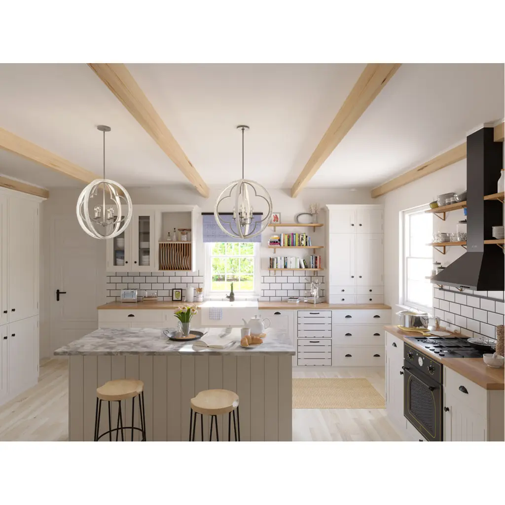 The Victorian and European influences in the Gablecrest 24-inch pendant light’s design come together for a look that's stunning above dining room tables and in breakfast nooks. The elegant look of the quatrefoil pattern coupled with the distressed finishes make it a pendant light fixture that’s at home in French country or farmhouse inspired spaces.