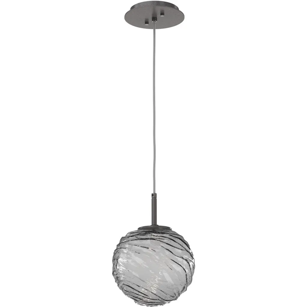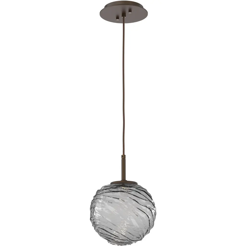 Gaia Pendant (Large)-Flat Bronze-Smoke Blown Glass-Cloth Braided Cord-LED 2700K