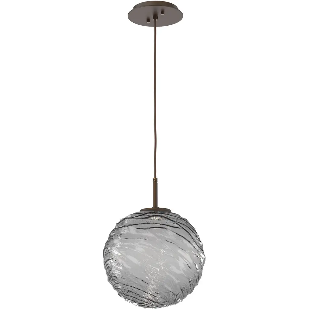 Gaia Pendant (Large)-Matte Black-Smoke Blown Glass-Cloth Braided Cord-LED 2700K