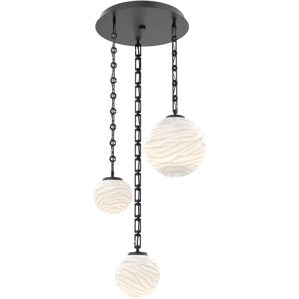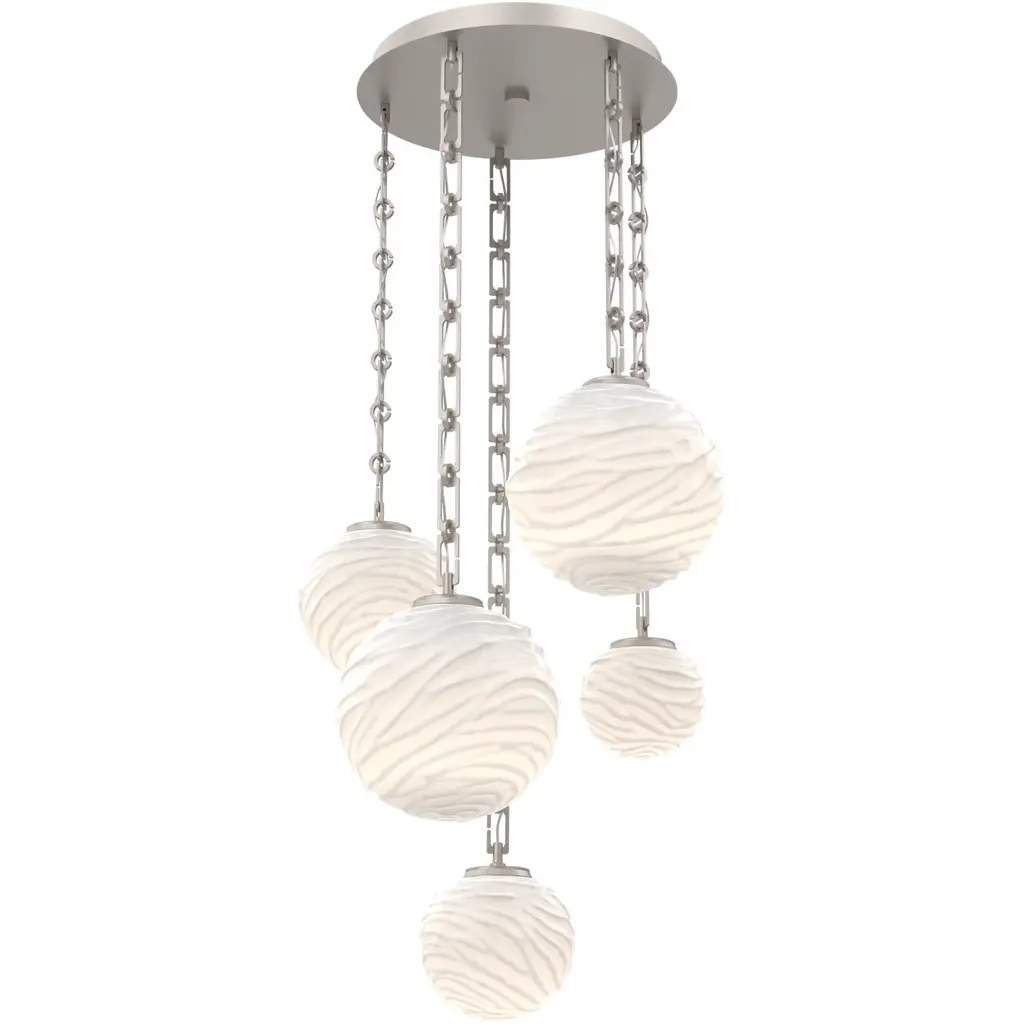 Featuring beautifully contoured orbs of hand-blown lead-free crystal, the Gaia round multi-pendant chandelier elevates the familiar round glass shade to a modern organic interpretation of the natural world. Gaia lighting is illuminated with 93 CRI integrated LED and includes a choice of glass colors, finishes and color temperature options. Suspension options include cloth-braided cord or handcrafted chain in three vintage-inspired styles.