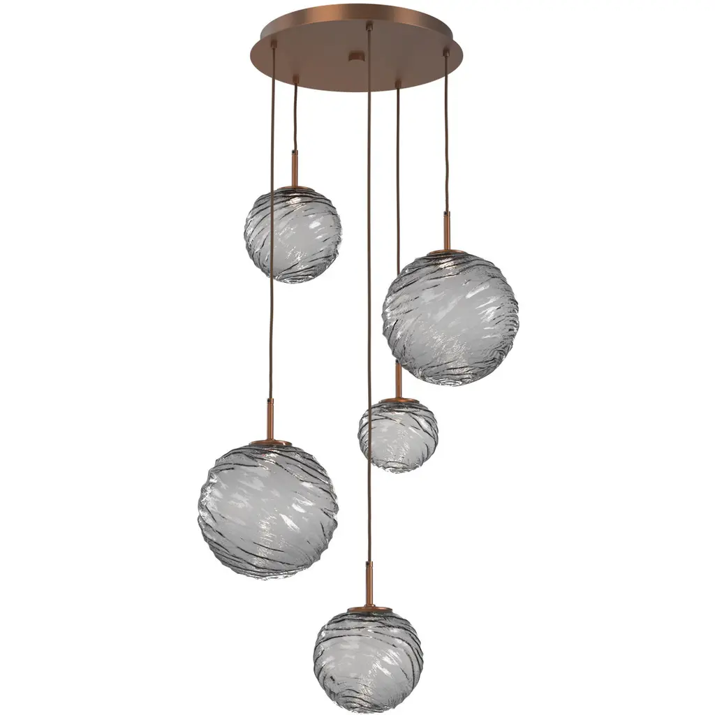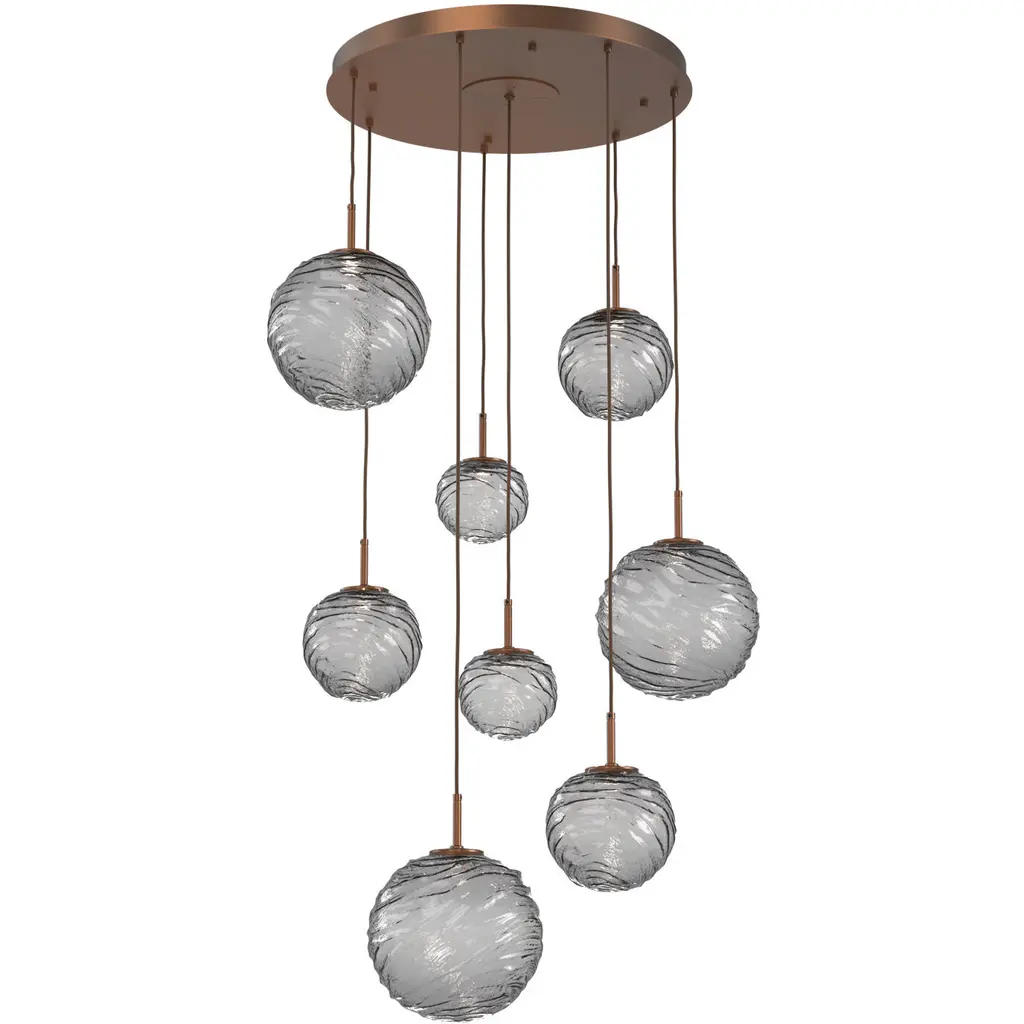 Gaia 8pc Round Multi-Pendant-Novel Brass-Smoke Blown Glass-Cloth Braided Cord-LED 3000K