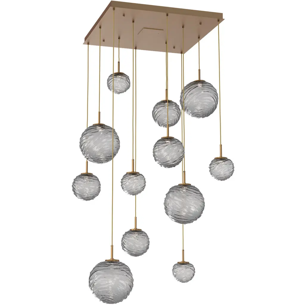 Gaia 12pc Square Multi-Pendant-Graphite-Smoke Blown Glass-Cloth Braided Cord-LED 2700K