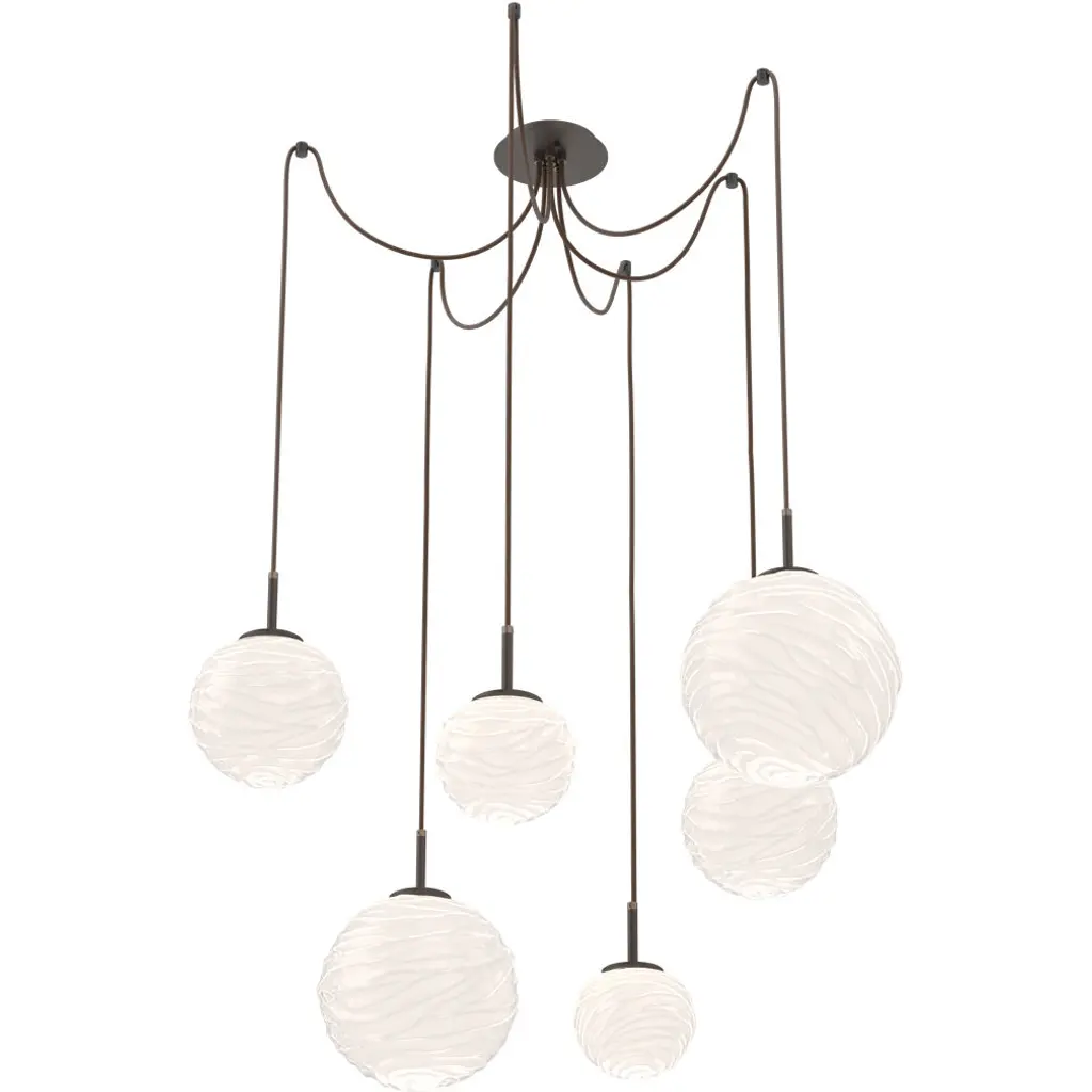 Gaia 7pc Linear Multi-Pendant-Flat Bronze-Smoke Blown Glass-Cloth Braided Cord-LED 2700K