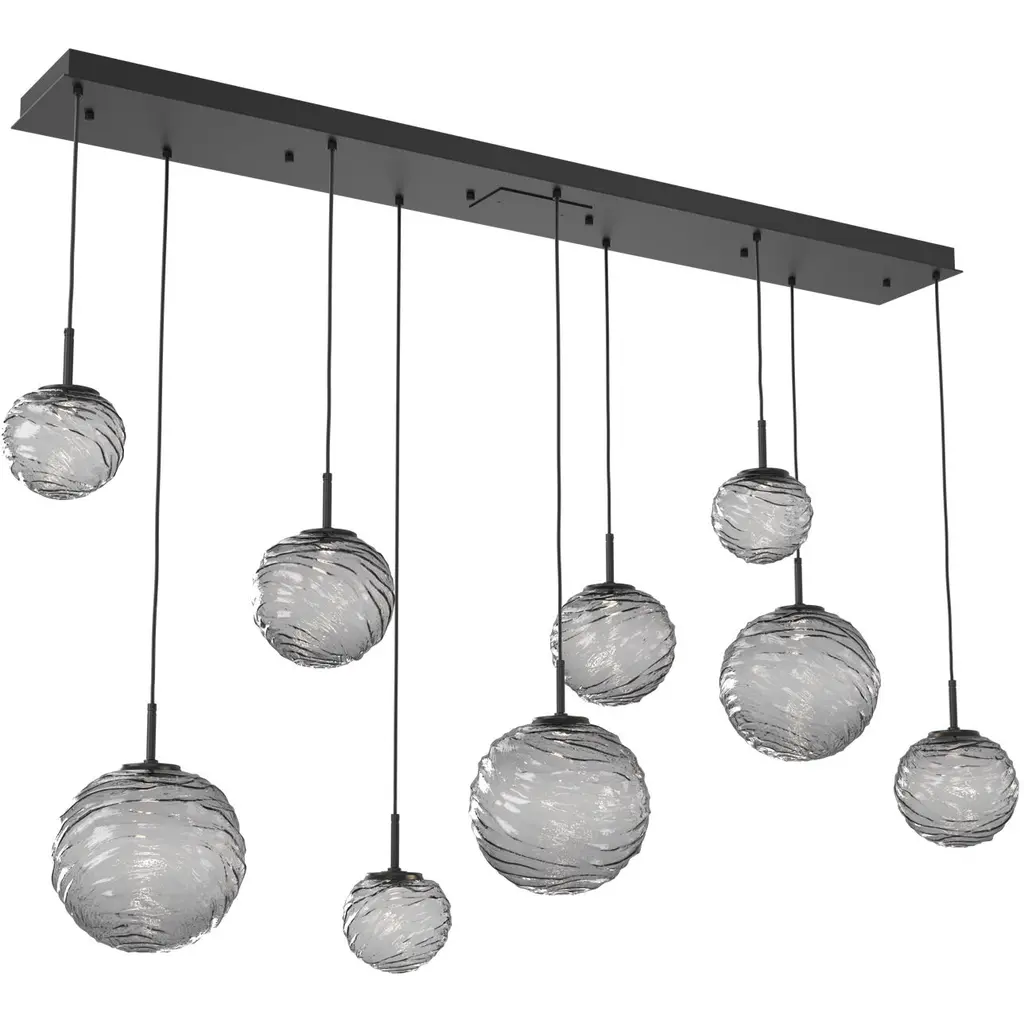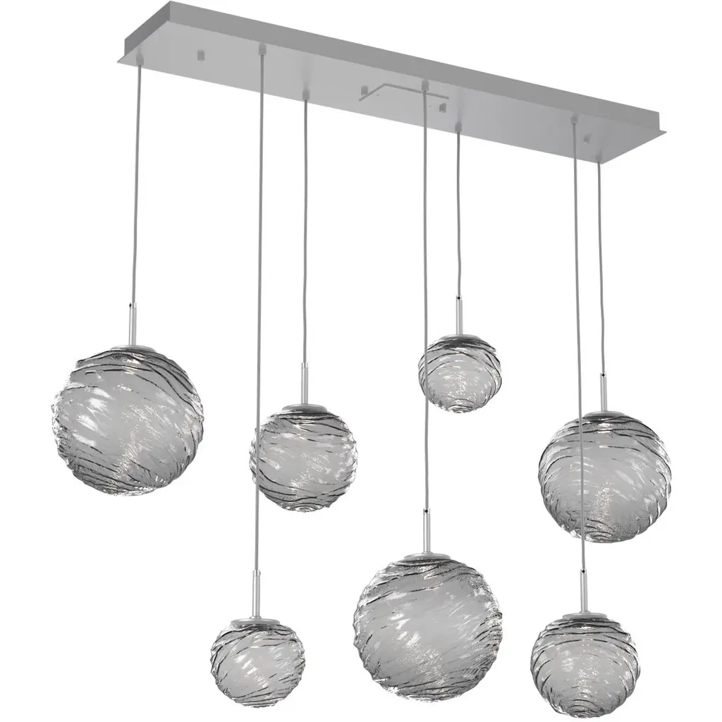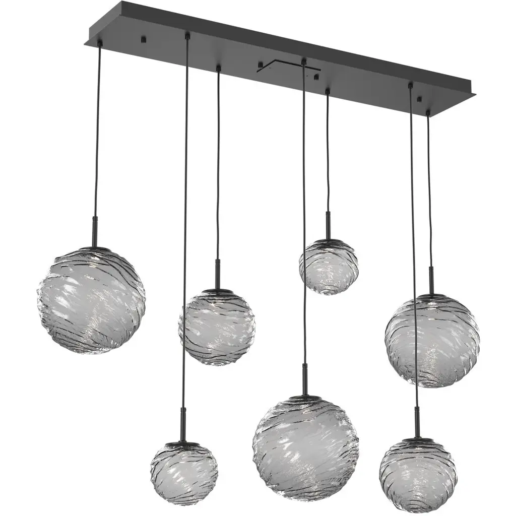 Gaia 7pc Linear Multi-Pendant-Graphite-Smoke Blown Glass-Cloth Braided Cord-LED 2700K