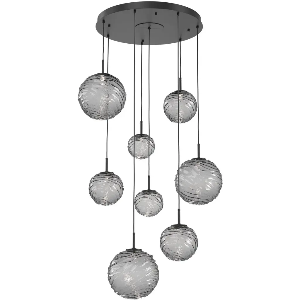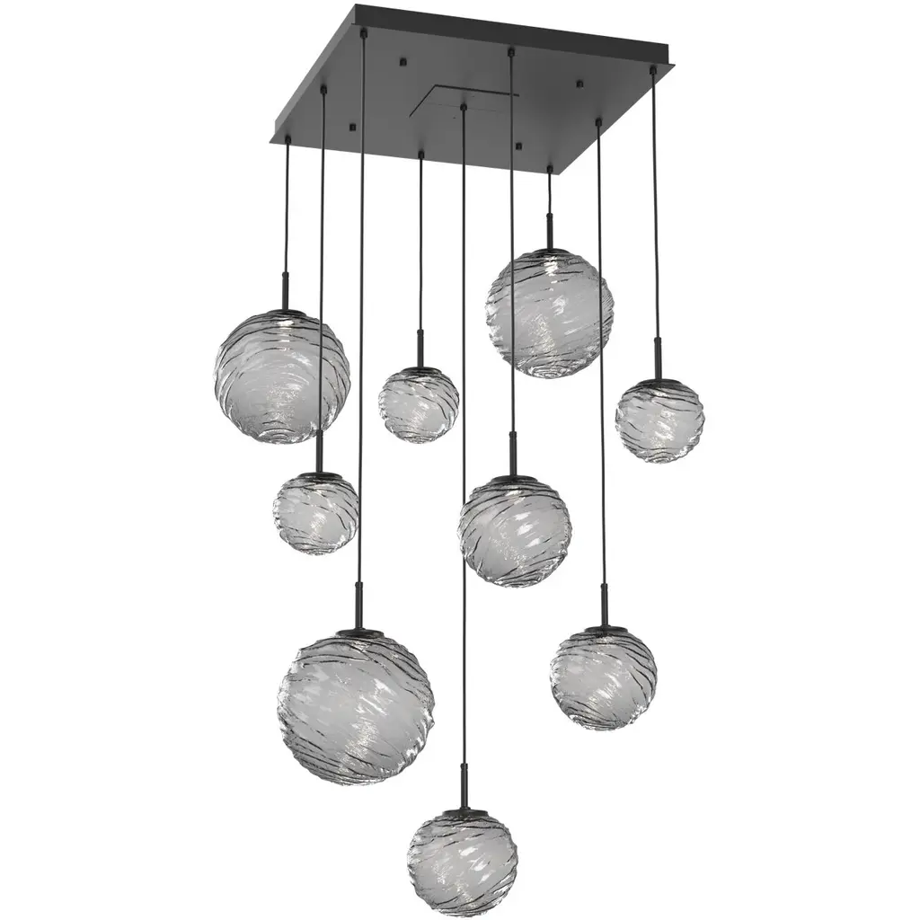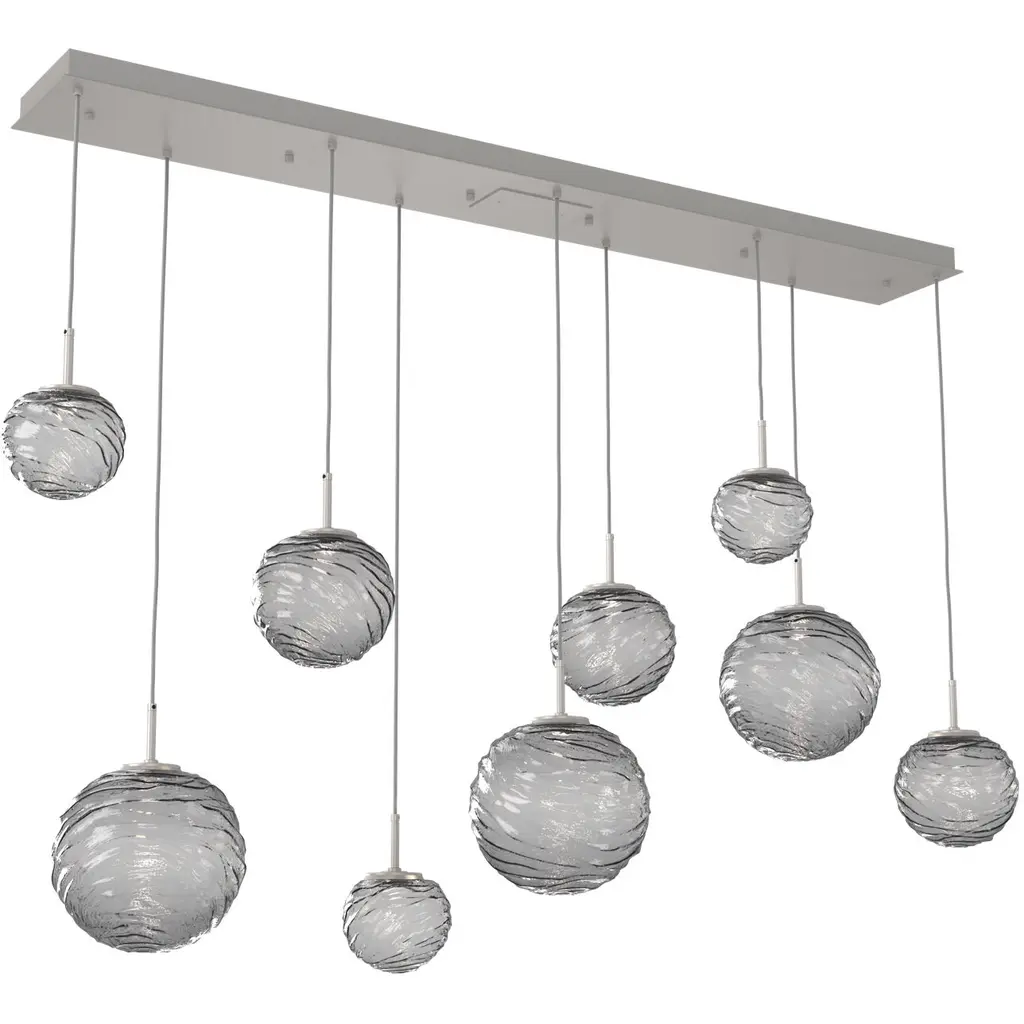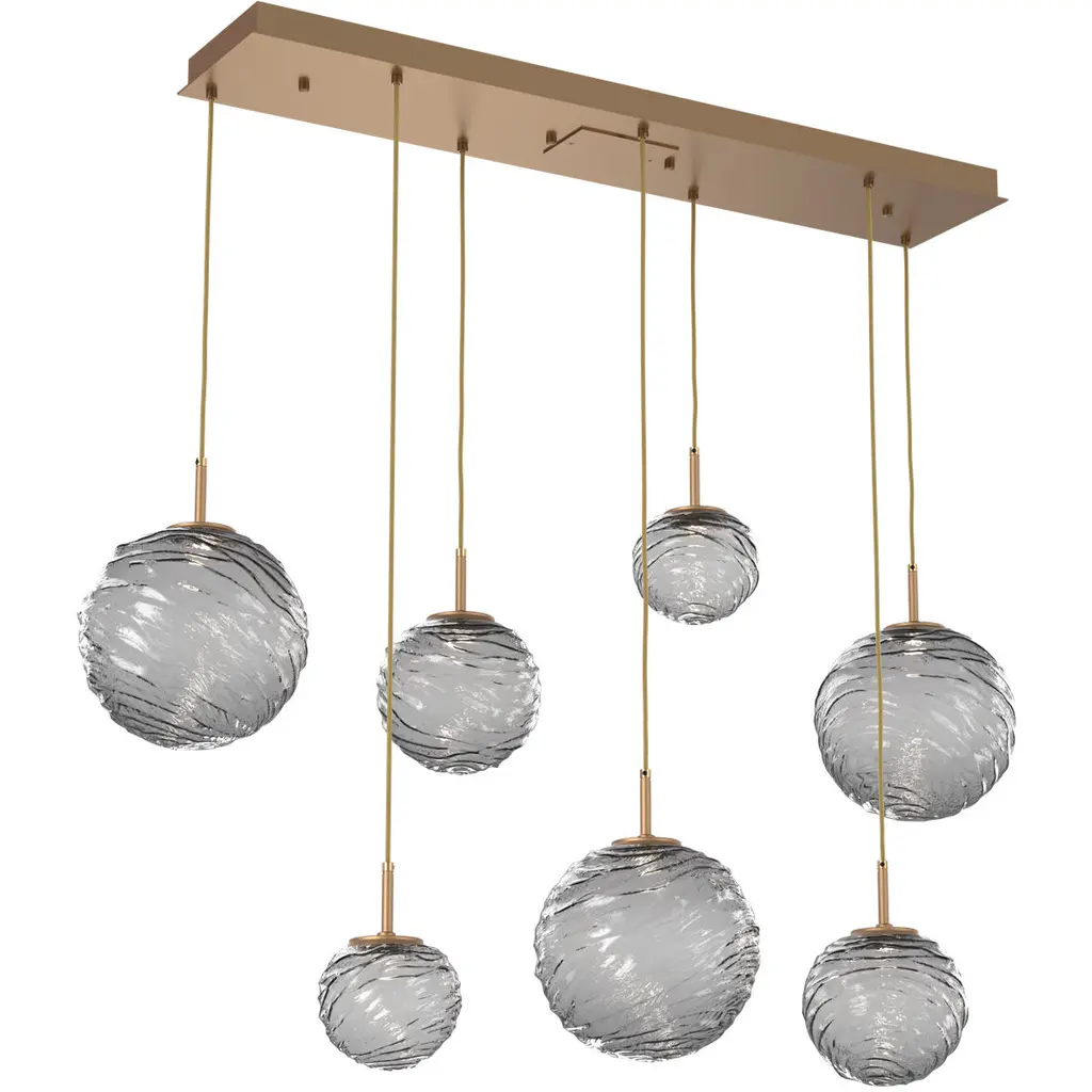 Gaia 7pc Linear Multi-Pendant-Graphite-Smoke Blown Glass-Cloth Braided Cord-LED 2700K