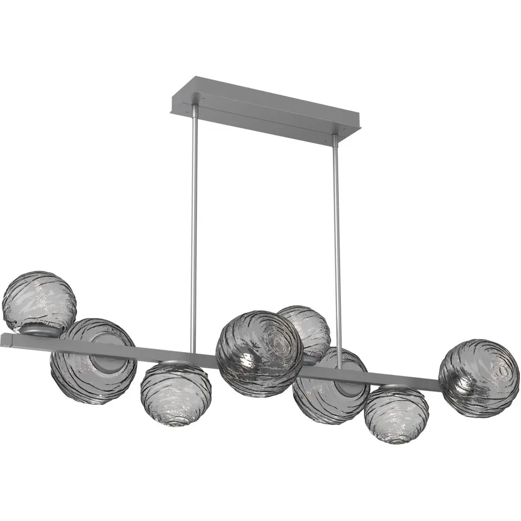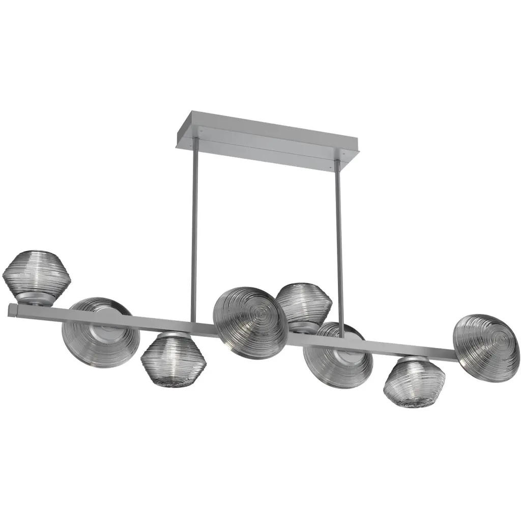 Gaia 8pc Twisted Branch-Beige Silver-Smoke Blown Glass-Threaded Rod Suspension-LED 2700K