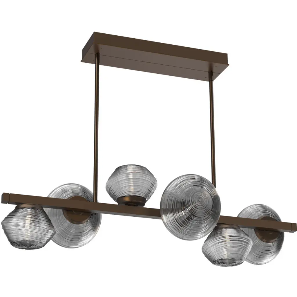Gaia Led 60 Inch Flat Bronze Linear Multi-Pendant Ceiling Light In 3000k Led, Smoke, Twisted Branch