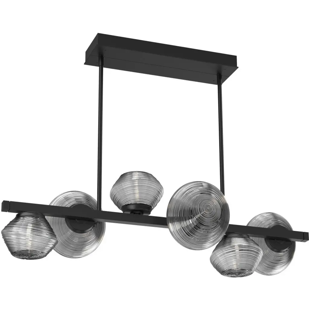 Gaia 6pc Twisted Branch-Matte Black-Smoke Blown Glass-Threaded Rod Suspension-LED 2700K