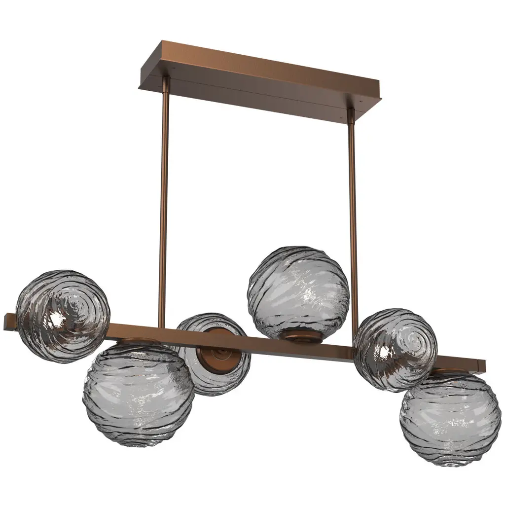 Gaia 6pc Twisted Branch-Novel Brass-Smoke Blown Glass-Threaded Rod Suspension-LED 2700K