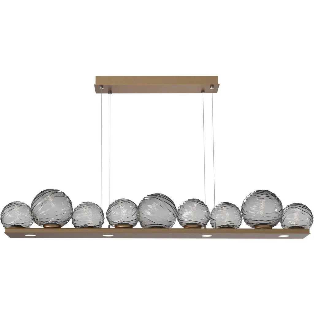 Gaia 59-inch Platform Linear-Beige Silver-Smoke Blown Glass-Stainless Cable-LED 2700K