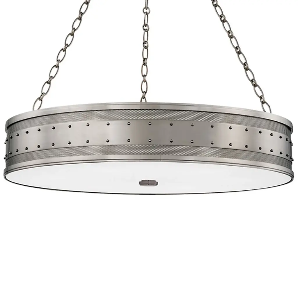 Small details have a big impact. The Gaines Pendant by Hudson Valley merges machine-era charm with modern sensibilities, creating a fixture that’s incomparably elegant. The Steel frame features numerous thoughtful elements, such as perforated and studded sections, that add character to the drum shape. The structure hangs from a trio of chains while a broad diffuser filters downlighting into the space below. With a strong nod to industrial style, you can hang this pendant in a room with either a classic or contemporary vibe.