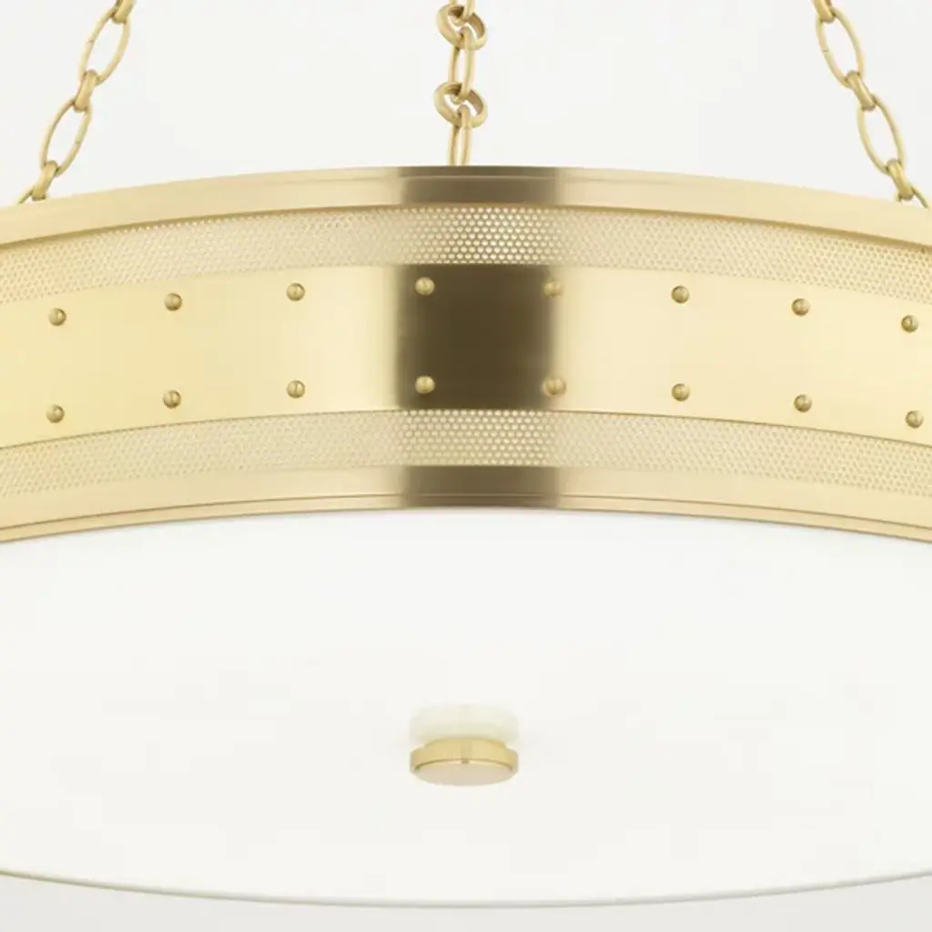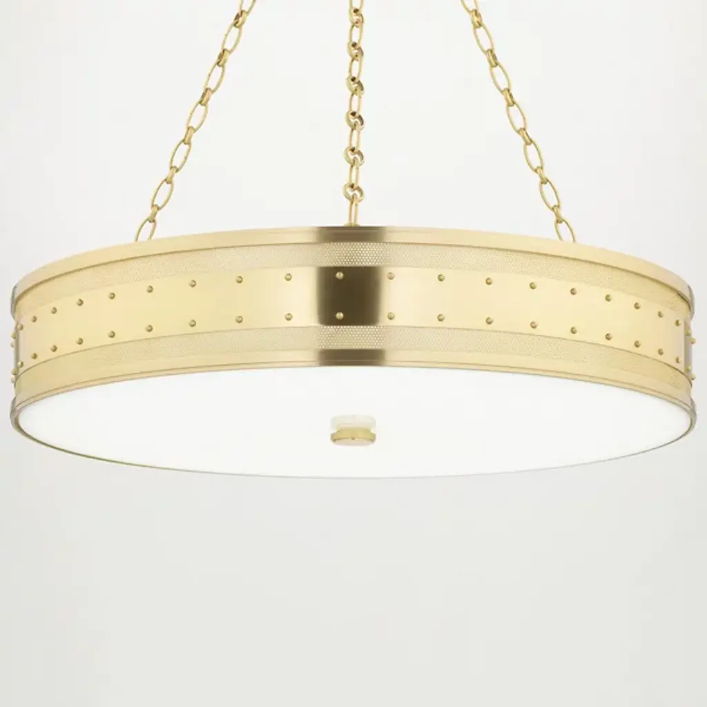 Small details have a big impact. The Gaines Pendant by Hudson Valley merges machine-era charm with modern sensibilities, creating a fixture that’s incomparably elegant. The Steel frame features numerous thoughtful elements, such as perforated and studded sections, that add character to the drum shape. The structure hangs from a trio of chains while a broad diffuser filters downlighting into the space below. With a strong nod to industrial style, you can hang this pendant in a room with either a classic or contemporary vibe.
