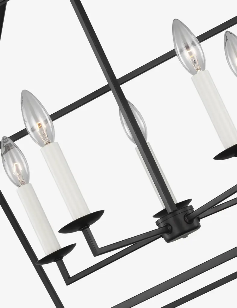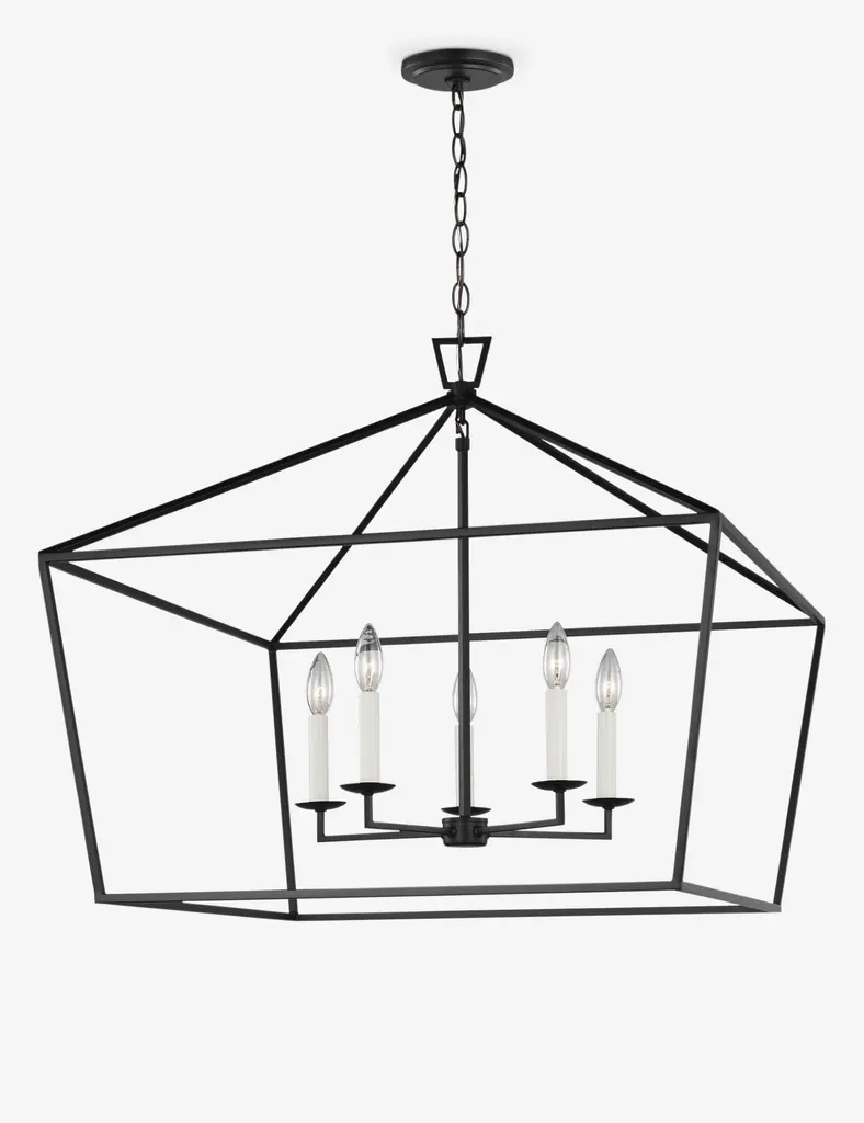 Bring statement lighting to transitional home design with this open frame pendant light. The airy, geometric silhouette offers a modern update on the classic lantern pendant, while candle-style lights inspire a rustic charm. This large-scale hanging light is the perfect feature over a dining room or coffee table.