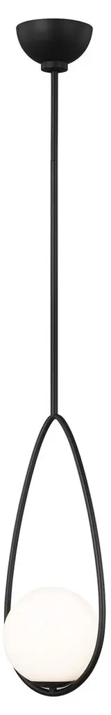 A steel teardrop given a brass or black finish cradles a globe crafted of mouth-blown milk glass, creating a pendant certain to command attention. Not only can it be mounted on a sloped ceiling, but because the pendant is damp rated you can use it in your bathroom as well as in any other room in your home.