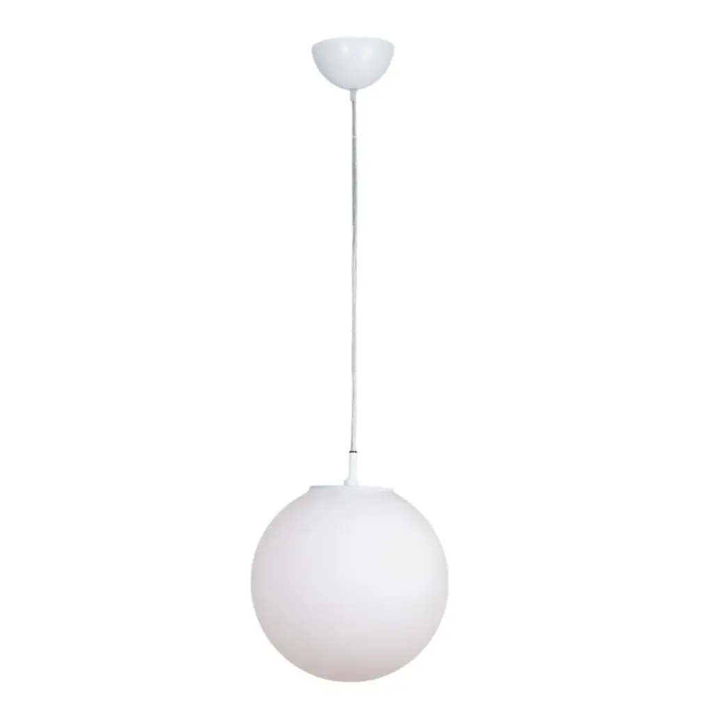 The Galaxy is a globe-shaped pendant with a 10", 12", 16" or 20" diameter, a clear cord and hemisphere-shaped canopy. Features