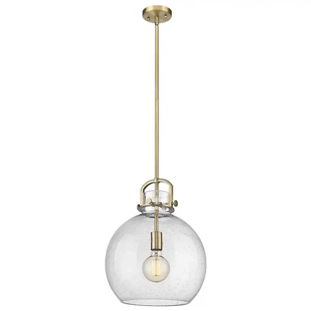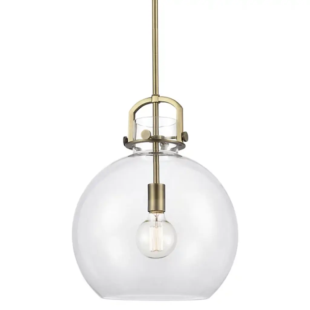 The Galilea Pendant by Alder & Ore adds an elegant touch to any interior space. Its industrial and vintage-inspired design with a unique globe shape creates a striking visual element that complements kitchen islands, foyers, and dinettes alike. This versatile piece features a beautifully crafted glass shade, perfect for adding an extra layer of sophistication to your home. The Hardy steel and brass construction ensures long-lasting appeal for both residential and commercial use.