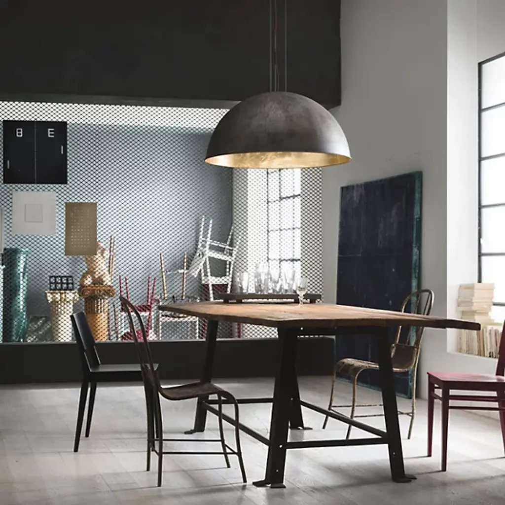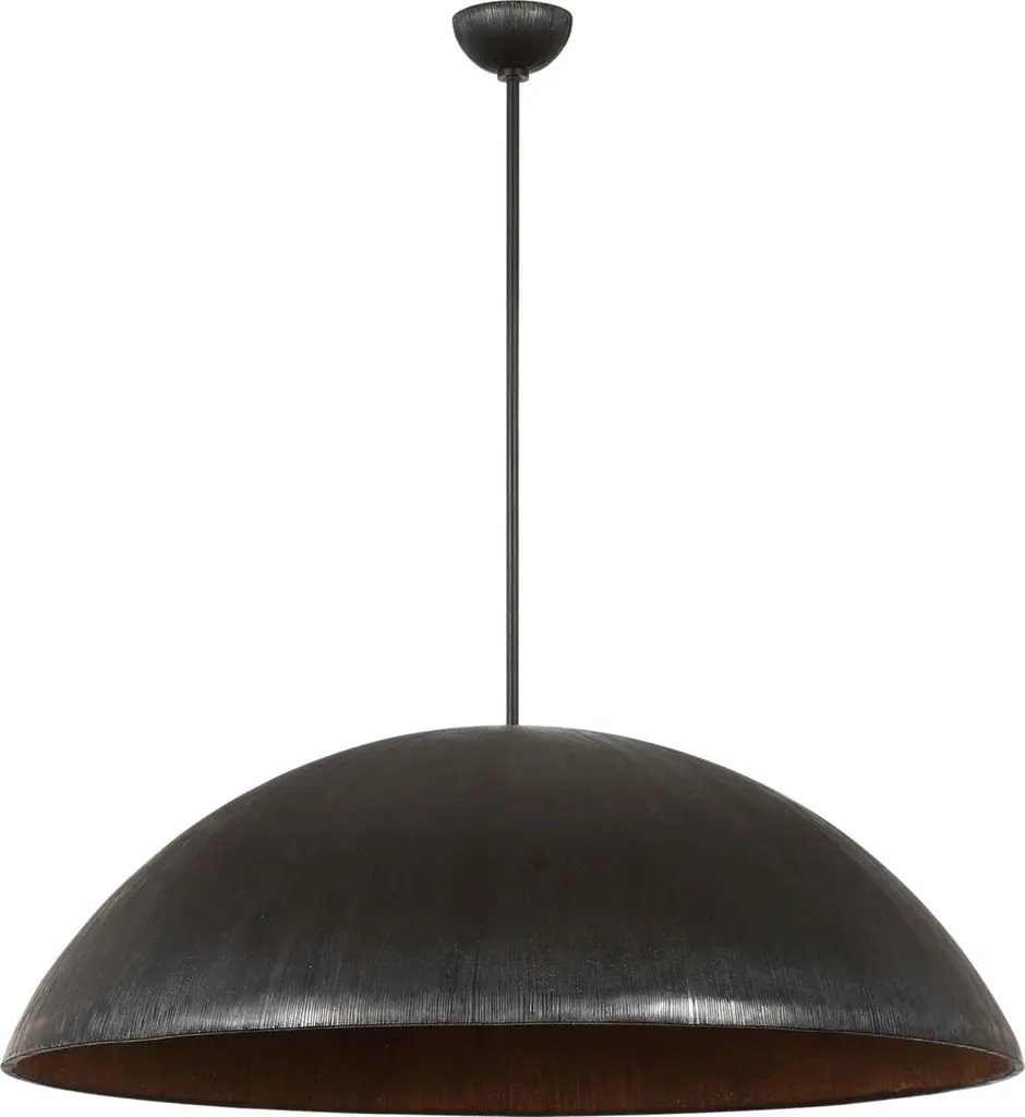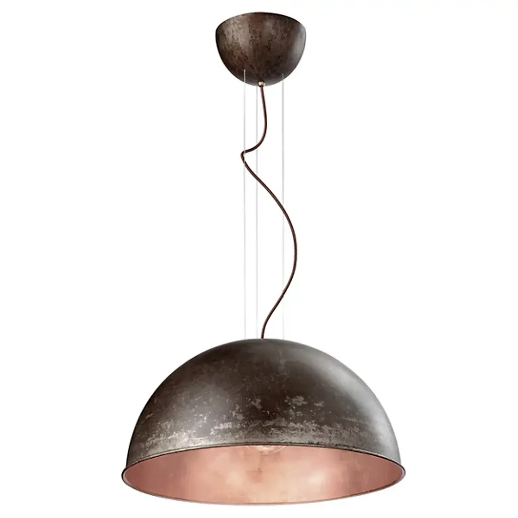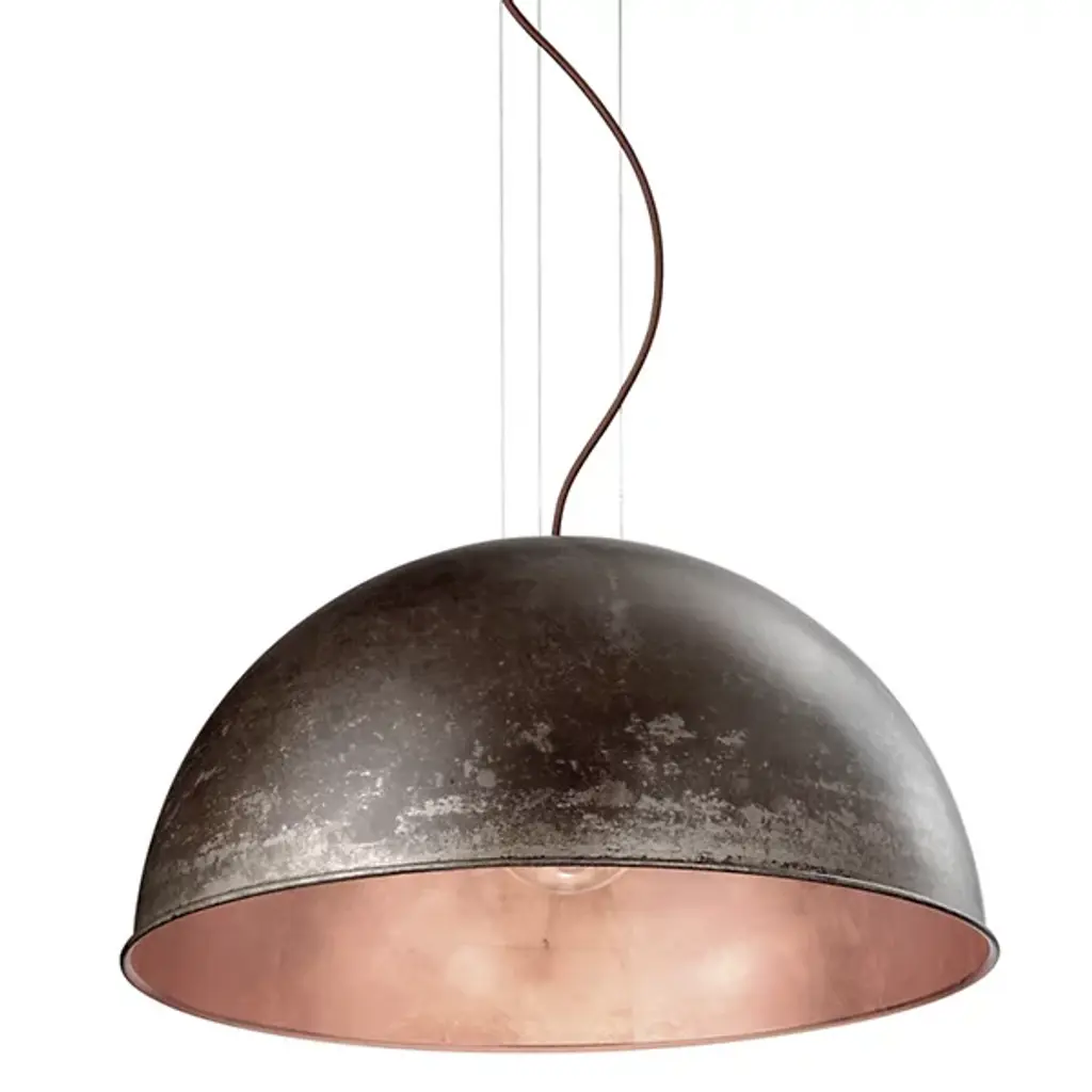 Inspired by the discoveries and personalities of the astronomical revolution. Named after the Italian astronomer, the DT Studio-designed Galileo Pendant from Il Fanale leaves one over the moon for its refined silhouette, spacious glow, and rich finishes. The pendant’s collection of hemispheres resembles those seen in an astronomical chart. Both the domed canopy and shade share a textured antique exterior that gives a nod to a planet’s rocky surface. The generous dome shade appears to float in the air with the help of a fine cable suspension. Lamping hides inside the shade’s curvy, metallic interior for reduced side glare. A flip of the switch sends down a wide pass of soft illumination.