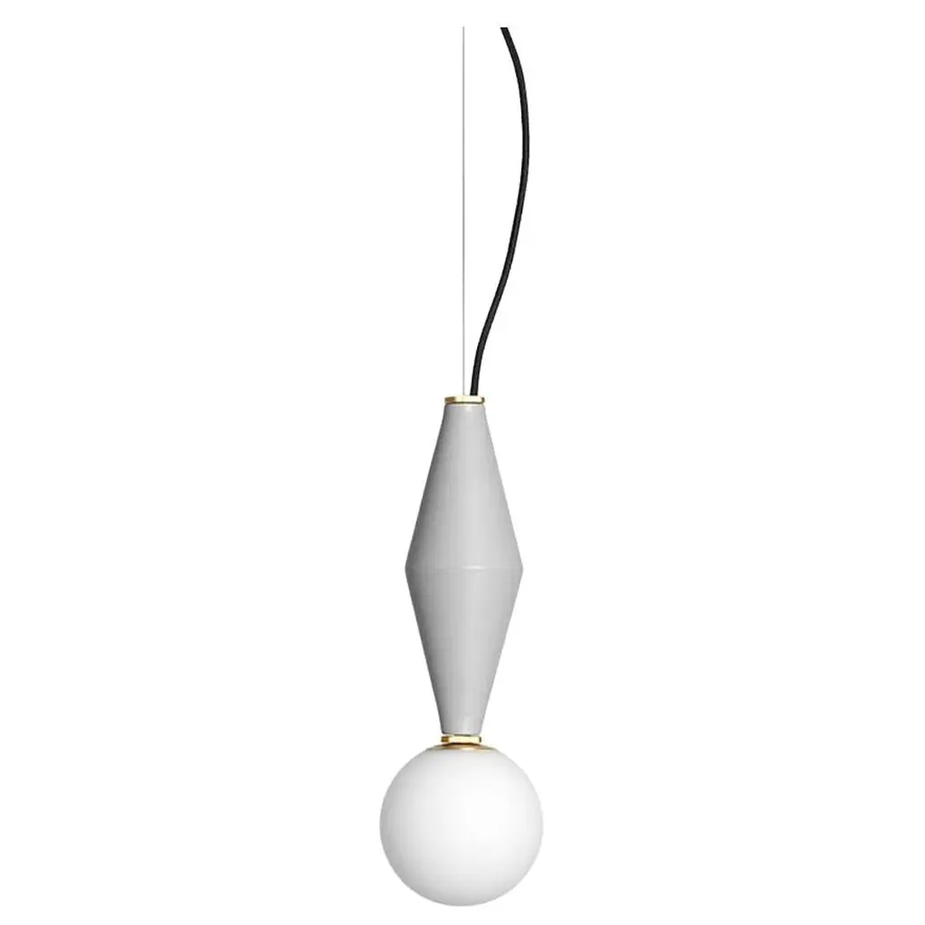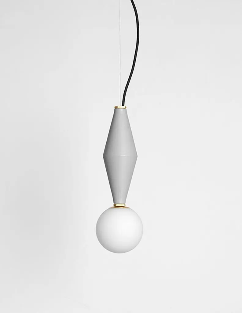 Gamma A lamp by Mason EditionsDimensions: 12 × 12 × 37 cmMaterials: aluminium and blown opal white glassColours: pink, burgundy, light grey, sage green, petrol green, black.All our lamps can be wired according to each country.Gamma is the third letter of the Greek alphabet and also the third brightest star in the constellation.It’s in fact an alphabet of three aluminium elements, that creates a range of six modular suspensions. The frosted glass sphere contains the luminous soul which, combined in different ways with the metal elements, gives life to new solutions that look like constellations. Suspended led lighting fixture available in several colours, to create infinite combinations: pink, burgundy, sage green, petrol green, light grey and black. Showcase it as a statement piece or spice up any interior space by displaying it in multiples.Mason Editions is an Italian company specialized in the production of design furniture, lighting solutions and accent pieces. Born from the lifelong passion for lighting and entrepreneurial spirit of Fabio and his partner Silvia, Mason Editions places itself halfway between fine art and exquisite craftsmanship. A collection of lighting, design objects and furnishing accessories, signed by artists Serena Confalonieri, Martina Bartoli and Matteo Fiorini, head of the creative direction. Mason Editions comes from the experience of an Italian lighting company placed in the Veneto region. This new brand of furniture elements was born from the meeting between the entrepreneur Fabio Mason and three international designers who designed the first collection for a sophisticated public. Therefore the collection wants to be eclectic and timeless. The material contrast and fresh design, with essential shapes, mark the mason editions collection. In conclusion, the elegant Italian sign highlights proposals suitable for all environments. Mason editions is a set of experiences, artisans, and productive know-how that creates a capable system.