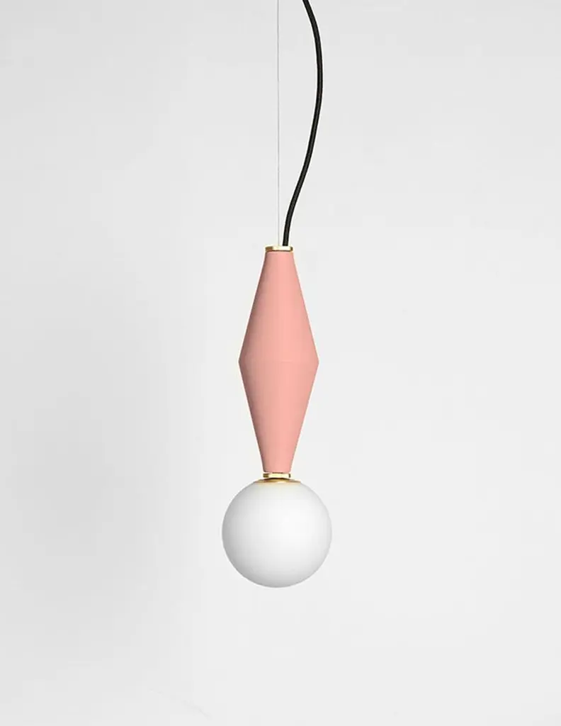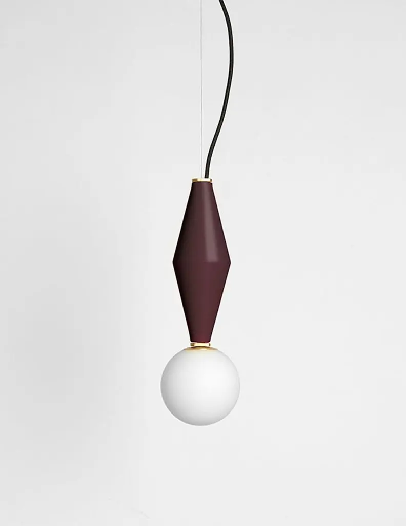 Gamma A Lamp by Mason Editions.Dimensions: 12 × 12 × 37 cmMaterials: aluminium and blown opal white glassColours: pink, burgundy, light grey, sage green, petrol green, black.All our lamps can be wired according to each country.Gamma is the third letter of the Greek alphabet and also the third brightest star in the constellation.It’s in fact an alphabet of three aluminium elements, that creates a range of six modular suspensions. The frosted glass sphere contains the luminous soul which, combined in different ways with the metal elements, gives life to new solutions that look like constellations. Suspended led lighting fixture available in several colours, to create infinite combinations: pink, burgundy, sage green, petrol green, light grey and black. Showcase it as a statement piece or spice up any interior space by displaying it in multiples.Mason Editions is an Italian company specialized in the production of design furniture, lighting solutions and accent pieces. Born from the lifelong passion for lighting and entrepreneurial spirit of Fabio and his partner Silvia, Mason Editions places itself halfway between fine art and exquisite craftsmanship. A collection of lighting, design objects and furnishing accessories, signed by artists Serena Confalonieri, Martina Bartoli and Matteo Fiorini, head of the creative direction. Mason Editions comes from the experience of an Italian lighting company placed in the Veneto region. This new brand of furniture elements was born from the meeting between the entrepreneur Fabio Mason and three international designers who designed the first collection for a sophisticated public. Therefore the collection wants to be eclectic and timeless. The material contrast and fresh design, with essential shapes, mark the mason editions collection. In conclusion, the elegant Italian sign highlights proposals suitable for all environments. Mason editions is a set of experiences, artisans, and productive know-how that creates a capable system.