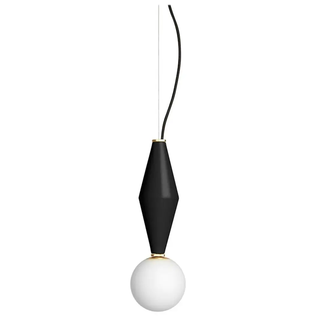 Gamma A lamp by Mason EditionsDimensions: 12 × 12 × 37 cmMaterials: aluminium and blown opal white glassColours: pink, burgundy, light grey, sage green, petrol green, black.All our lamps can be wired according to each country.Gamma is the third letter of the Greek alphabet and also the third brightest star in the constellation.It’s in fact an alphabet of three aluminium elements, that creates a range of six modular suspensions. The frosted glass sphere contains the luminous soul which, combined in different ways with the metal elements, gives life to new solutions that look like constellations. Suspended led lighting fixture available in several colours, to create infinite combinations: pink, burgundy, sage green, petrol green, light grey and black. Showcase it as a statement piece or spice up any interior space by displaying it in multiples.Mason Editions is an Italian company specialized in the production of design furniture, lighting solutions and accent pieces. Born from the lifelong passion for lighting and entrepreneurial spirit of Fabio and his partner Silvia, Mason Editions places itself halfway between fine art and exquisite craftsmanship. A collection of lighting, design objects and furnishing accessories, signed by artists Serena Confalonieri, Martina Bartoli and Matteo Fiorini, head of the creative direction. Mason Editions comes from the experience of an Italian lighting company placed in the Veneto region. This new brand of furniture elements was born from the meeting between the entrepreneur Fabio Mason and three international designers who designed the first collection for a sophisticated public. Therefore the collection wants to be eclectic and timeless. The material contrast and fresh design, with essential shapes, mark the mason editions collection. In conclusion, the elegant Italian sign highlights proposals suitable for all environments. Mason editions is a set of experiences, artisans, and productive know-how that creates a capable system.