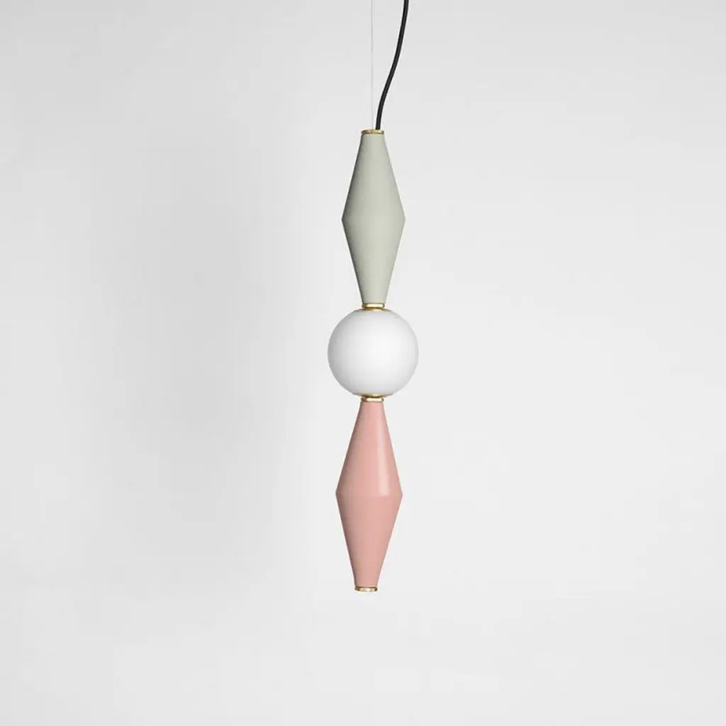 Gamma D lamp by Mason Editions.Dimensions: 12 × 12 × 37 cmMaterials: aluminium and blown opal white glassColours: pink, burgundy, light grey, sage green, petrol green, black; grey/petrol green, grey/sage green, grey/pink, burgundy/pink, sage green/petrol green.All our lamps can be wired according to each country.Gamma is the third letter of the Greek alphabet and also the third brightest star in the constellation.It’s in fact an alphabet of three aluminium elements, that creates a range of six modular suspensions. The frosted glass sphere contains the luminous soul which, combined in different ways with the metal elements, gives life to new solutions that look like constellations. Led ceiling light featured here with two aluminium cones, separated by a blown opal white glass sphere. Elevate your indoor lighting with this eclectic pendant, creating a suspension system by pairing this piece alongside others of the same collection.Mason Editions is an Italian company specialized in the production of design furniture, lighting solutions and accent pieces. Born from the lifelong passion for lighting and entrepreneurial spirit of Fabio and his partner Silvia, Mason Editions places itself halfway between fine art and exquisite craftsmanship. A collection of lighting, design objects and furnishing accessories, signed by artists Serena Confalonieri, Martina Bartoli and Matteo Fiorini, head of the creative direction. Mason Editions comes from the experience of an Italian lighting company placed in the Veneto region. This new brand of furniture elements was born from the meeting between the entrepreneur Fabio Mason and three international designers who designed the first collection for a sophisticated public. Therefore the collection wants to be eclectic and timeless. The material contrast and fresh design, with essential shapes, mark the mason editions collection. In conclusion, the elegant Italian sign highlights proposals suitable for all environments. Mason editions is a set of experiences, artisans, and productive know-how that creates a capable system.