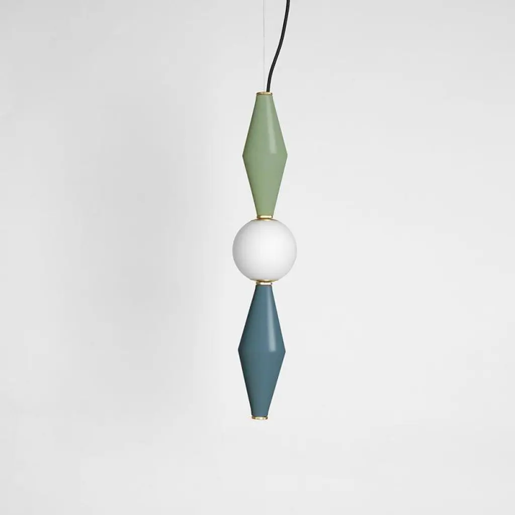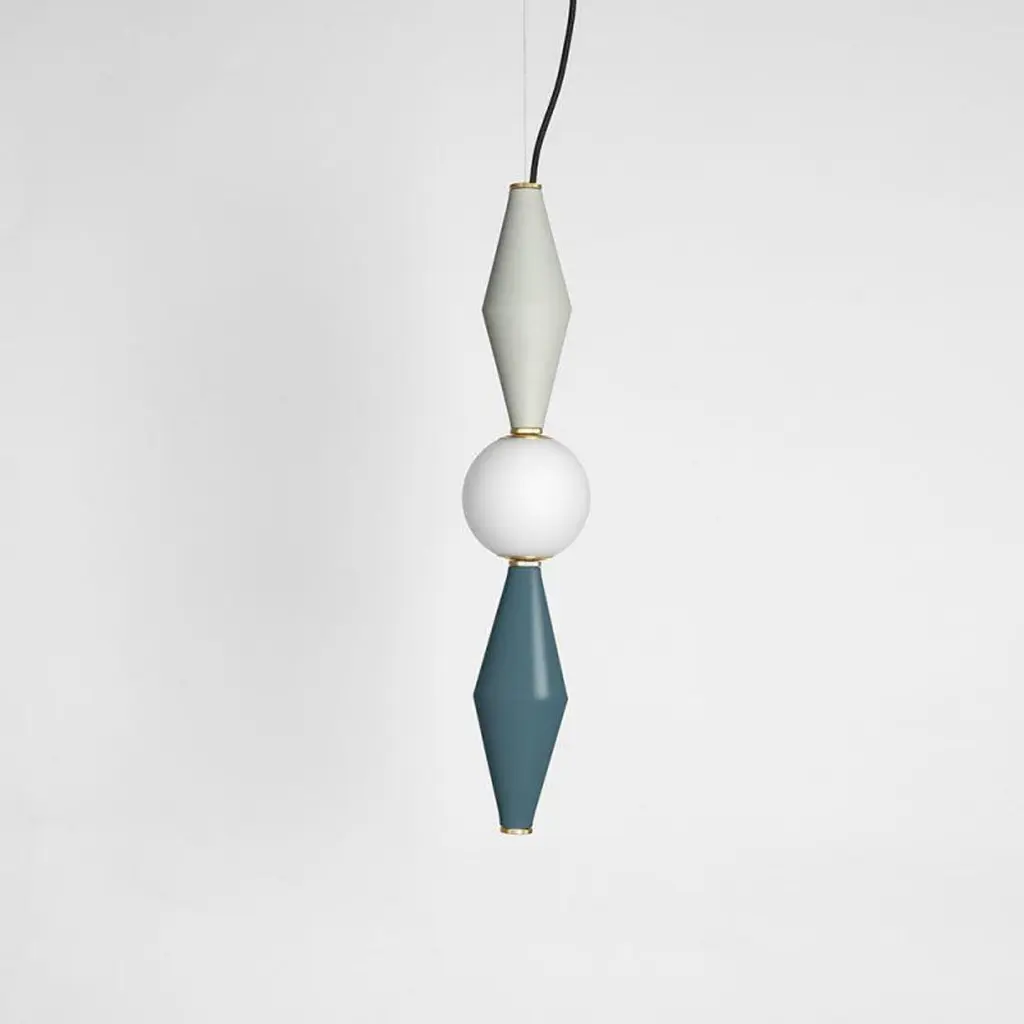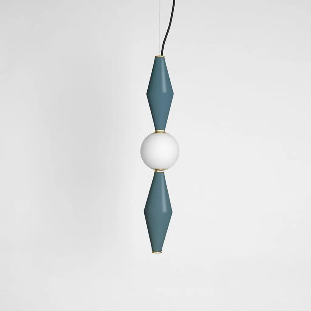 Petrol green Gamma D lamp by Mason Editions.Dimensions: 12 × 12 × 37 cmMaterials: aluminium and blown opal white glassColours: pink, burgundy, light grey, sage green, petrol green, black; grey/petrol green, grey/sage green, grey/pink, burgundy/pink, sage green/petrol green.All our lamps can be wired according to each country.Gamma is the third letter of the Greek alphabet and also the third brightest star in the constellation.It’s in fact an alphabet of three aluminium elements, that creates a range of six modular suspensions. The frosted glass sphere contains the luminous soul which, combined in different ways with the metal elements, gives life to new solutions that look like constellations. Led ceiling light featured here with two aluminium cones, separated by a blown opal white glass sphere. Elevate your indoor lighting with this eclectic pendant, creating a suspension system by pairing this piece alongside others of the same collection.Mason Editions is an Italian company specialized in the production of design furniture, lighting solutions and accent pieces. Born from the lifelong passion for lighting and entrepreneurial spirit of Fabio and his partner Silvia, Mason Editions places itself halfway between fine art and exquisite craftsmanship. A collection of lighting, design objects and furnishing accessories, signed by artists Serena Confalonieri, Martina Bartoli and Matteo Fiorini, head of the creative direction. Mason Editions comes from the experience of an Italian lighting company placed in the Veneto region. This new brand of furniture elements was born from the meeting between the entrepreneur Fabio Mason and three international designers who designed the first collection for a sophisticated public. Therefore the collection wants to be eclectic and timeless. The material contrast and fresh design, with essential shapes, mark the mason editions collection. In conclusion, the elegant Italian sign highlights proposals suitable for all environments. Mason editions is a set of experiences, artisans, and productive know-how that creates a capable system.