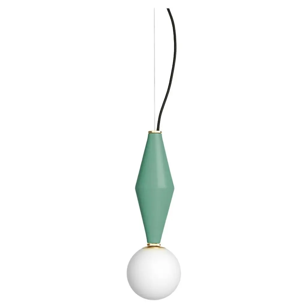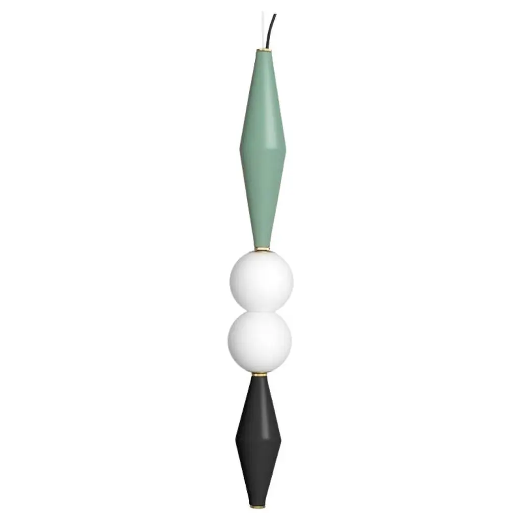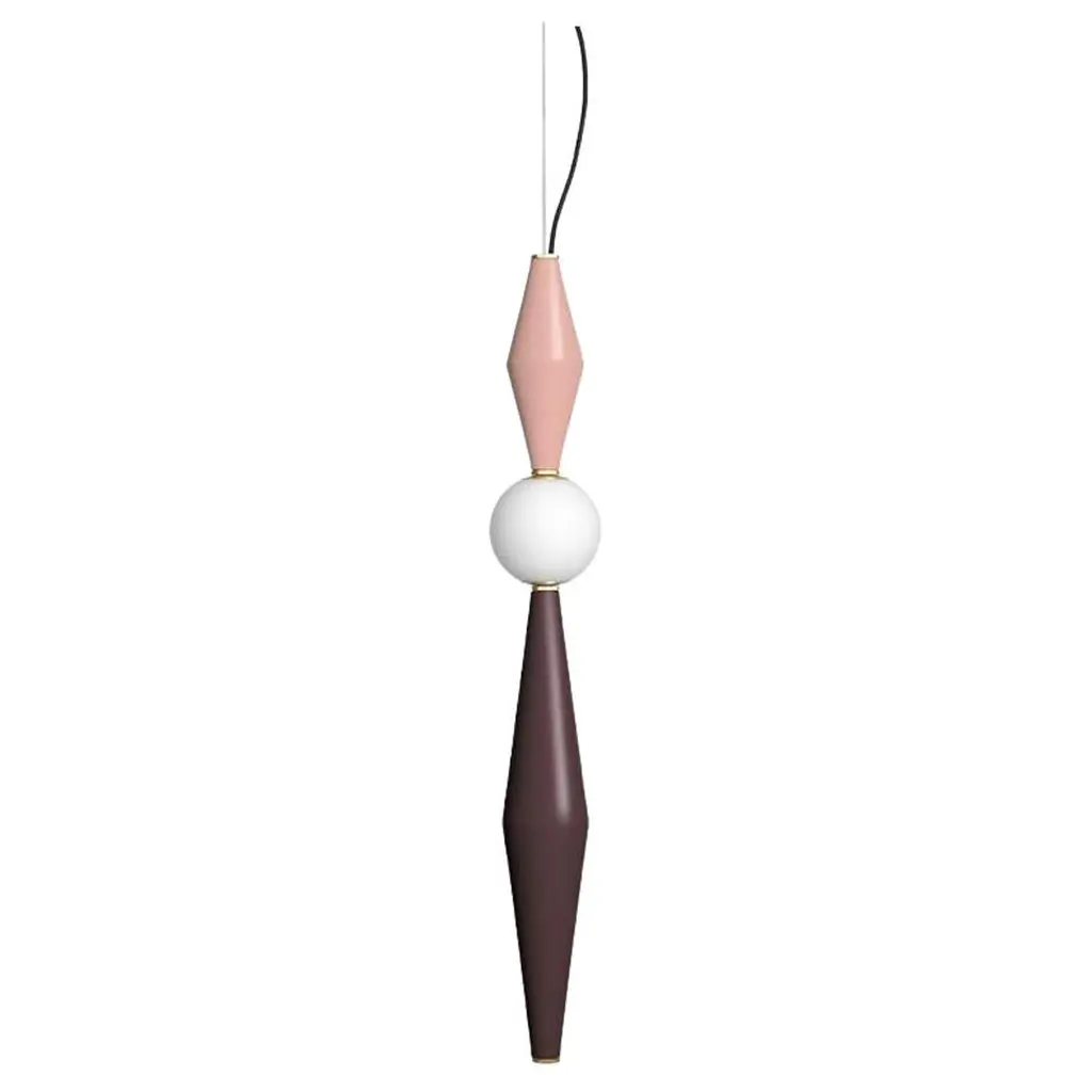 Gamma E lamp by Mason Editions.Dimensions: 12 × 12 × 37 cmMaterials: aluminium and blown opal white glassColours: pink, burgundy, light grey, sage green, petrol green, black; petrol green/black, sage green/black, pink/black, burgundy/black.All our lamps can be wired according to each country.Gamma is the third letter of the Greek alphabet and also the third brightest star in the constellation.It’s in fact an alphabet of three aluminium elements, that creates a range of six modular suspensions. The frosted glass spheres contain the luminous soul which, combined in different ways with the metal elements, give life to new solutions that look like constellations. A pendant lamp powered by led lighting, a sophisticated design object that will suit any modern interior space. Pair multiple Gamma pendants in various positions for a magical effect.Mason Editions is an Italian company specialized in the production of design furniture, lighting solutions and accent pieces. Born from the lifelong passion for lighting and entrepreneurial spirit of Fabio and his partner Silvia, Mason Editions places itself halfway between fine art and exquisite craftsmanship. A collection of lighting, design objects and furnishing accessories, signed by artists Serena Confalonieri, Martina Bartoli and Matteo Fiorini, head of the creative direction. Mason Editions comes from the experience of an Italian lighting company placed in the Veneto region. This new brand of furniture elements was born from the meeting between the entrepreneur Fabio Mason and three international designers who designed the first collection for a sophisticated public. Therefore the collection wants to be eclectic and timeless. The material contrast and fresh design, with essential shapes, mark the mason editions collection. In conclusion, the elegant Italian sign highlights proposals suitable for all environments. Mason editions is a set of experiences, artisans, and productive know-how that creates a capable system.