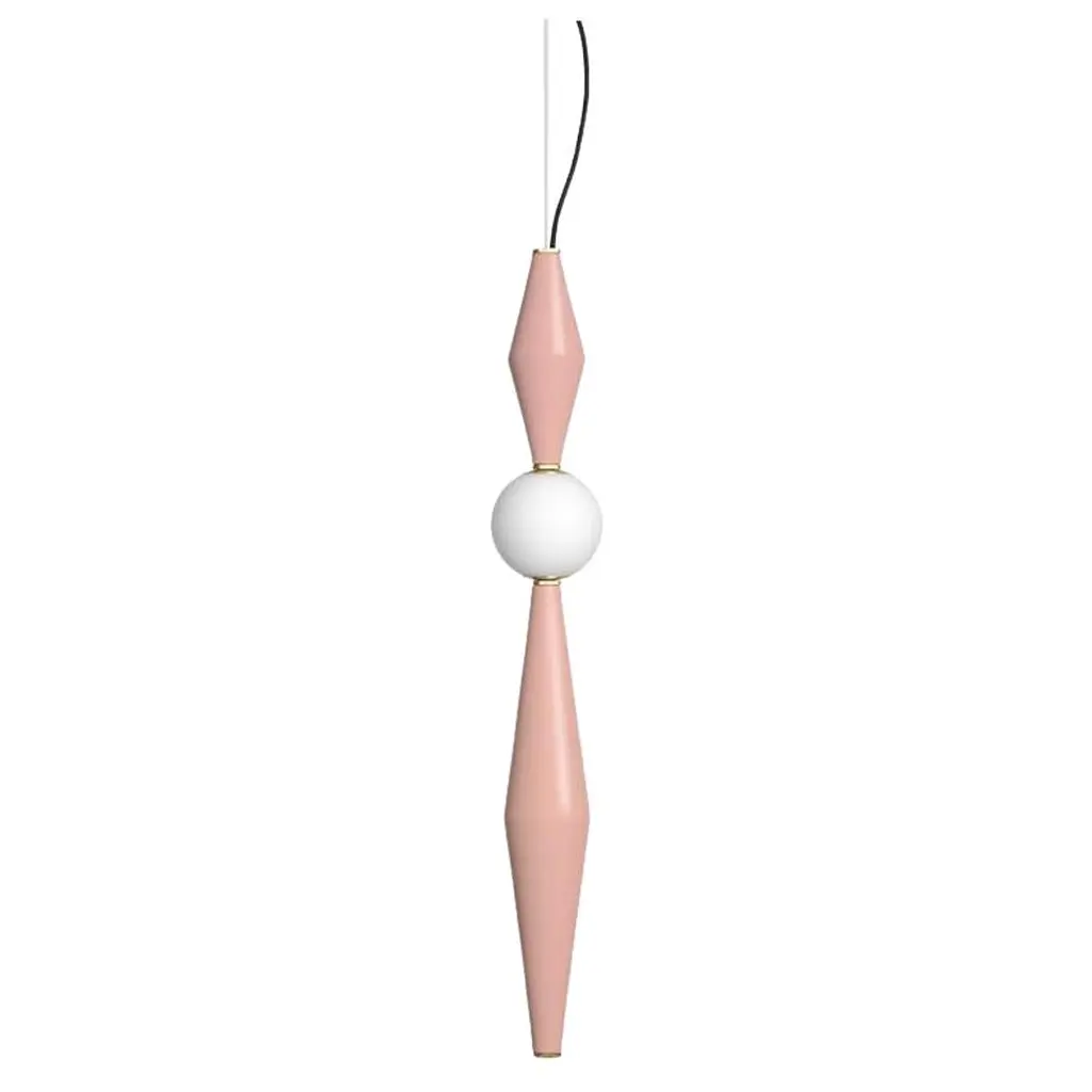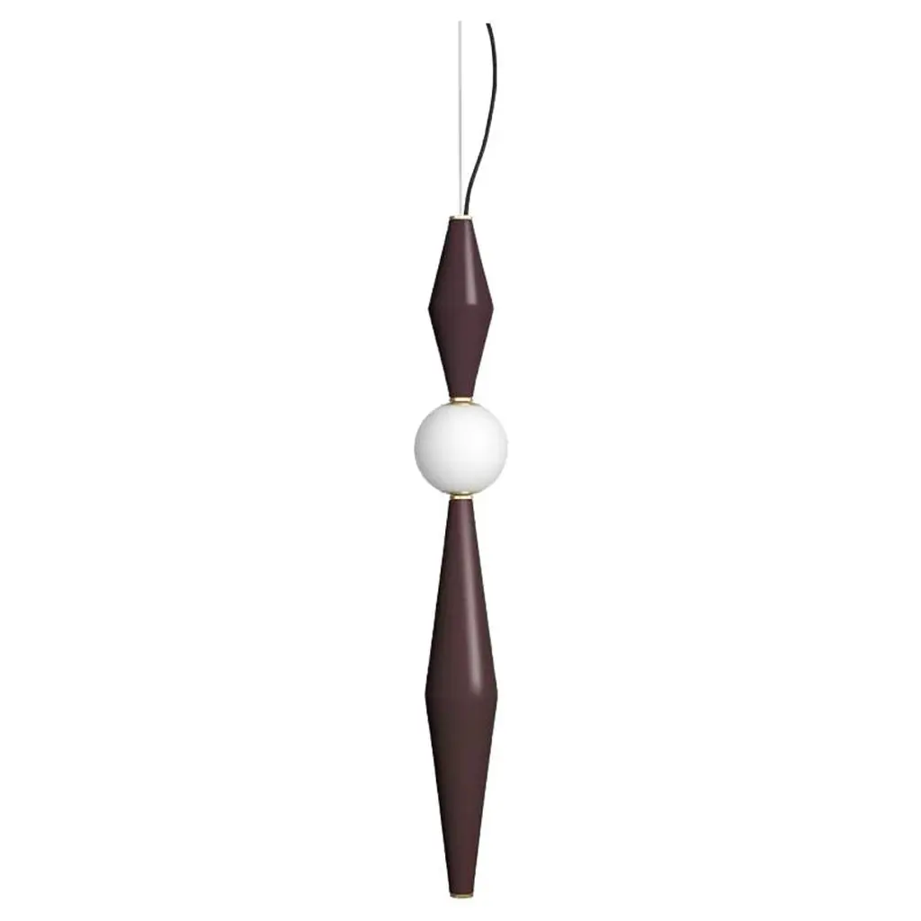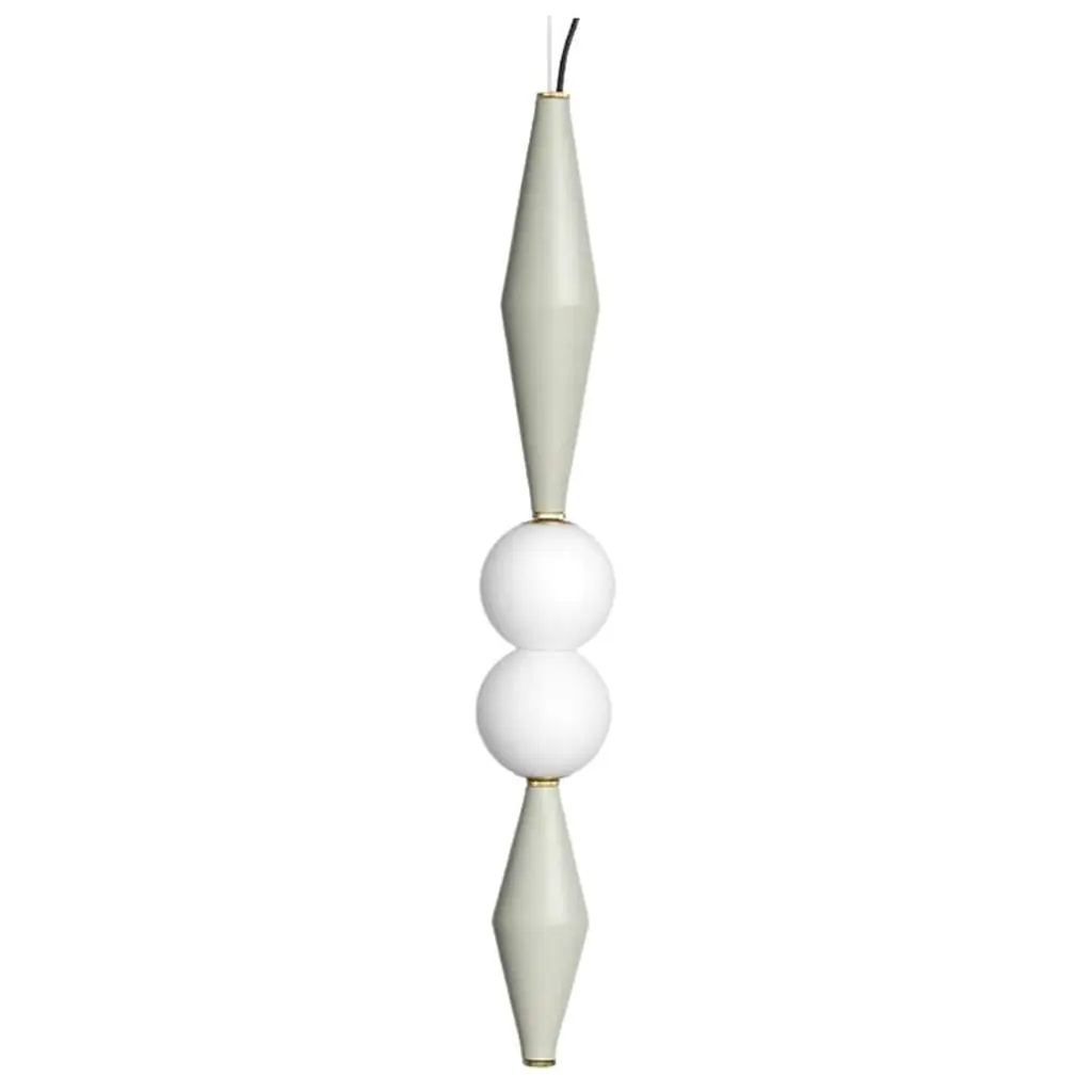 Gamma E lamp by Mason Editions.Dimensions: 12 × 12 × 37 cmMaterials: aluminium and blown opal white glassColours: pink, burgundy, light grey, sage green, petrol green, black; petrol green/black, sage green/black, pink/black, burgundy/black.All our lamps can be wired according to each country.Gamma is the third letter of the Greek alphabet and also the third brightest star in the constellation.It’s in fact an alphabet of three aluminium elements, that creates a range of six modular suspensions. The frosted glass spheres contain the luminous soul which, combined in different ways with the metal elements, give life to new solutions that look like constellations. A pendant lamp powered by led lighting, a sophisticated design object that will suit any modern interior space. Pair multiple Gamma pendants in various positions for a magical effect.Mason Editions is an Italian company specialized in the production of design furniture, lighting solutions and accent pieces. Born from the lifelong passion for lighting and entrepreneurial spirit of Fabio and his partner Silvia, Mason Editions places itself halfway between fine art and exquisite craftsmanship. A collection of lighting, design objects and furnishing accessories, signed by artists Serena Confalonieri, Martina Bartoli and Matteo Fiorini, head of the creative direction. Mason Editions comes from the experience of an Italian lighting company placed in the Veneto region. This new brand of furniture elements was born from the meeting between the entrepreneur Fabio Mason and three international designers who designed the first collection for a sophisticated public. Therefore the collection wants to be eclectic and timeless. The material contrast and fresh design, with essential shapes, mark the mason editions collection. In conclusion, the elegant Italian sign highlights proposals suitable for all environments. Mason editions is a set of experiences, artisans, and productive know-how that creates a capable system.