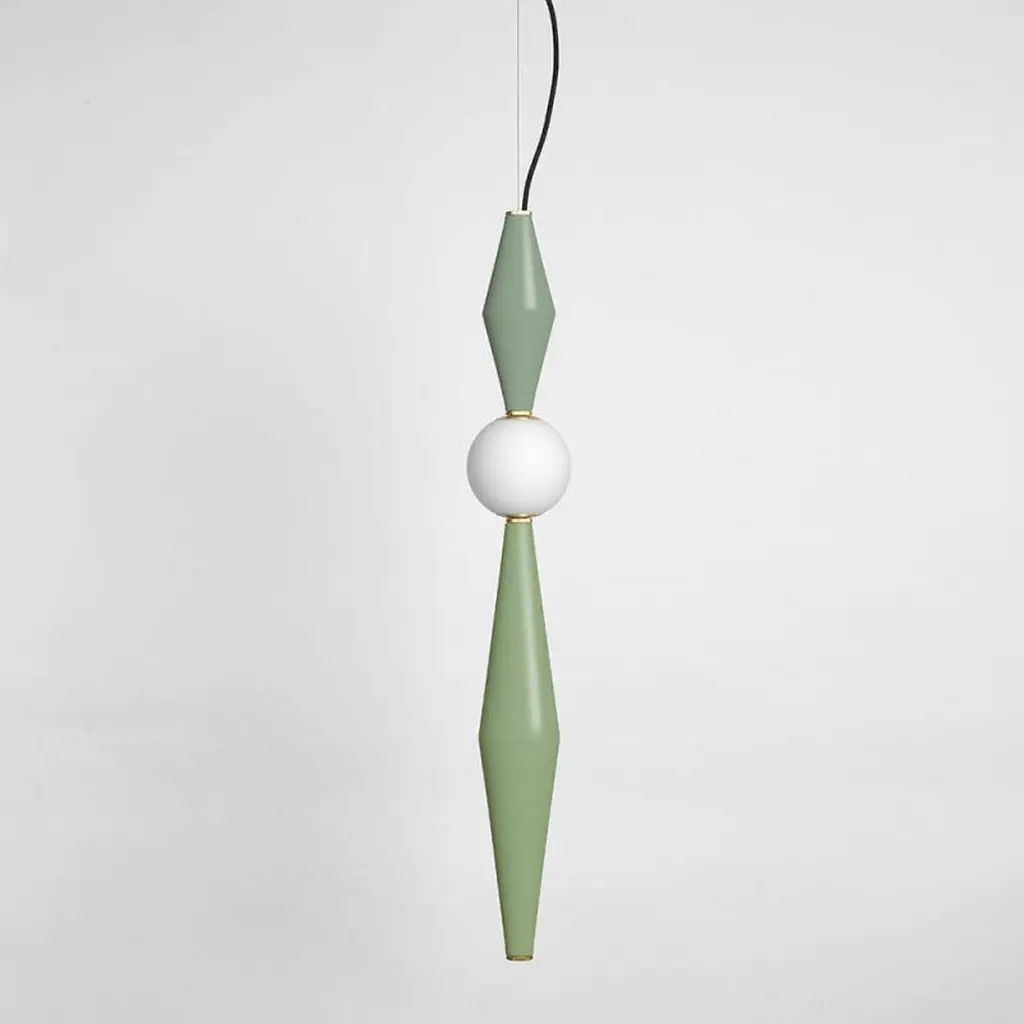 Gamma F lamp by Mason Editions.Dimensions: 12 × 12 × 37 cmMaterials: Aluminium and blown opal white glassColours: Pink, burgundy, light grey, sage green, petrol green, black; petrol green / sage green, black / grey, pink / grey, pink / burgundy.All our lamps can be wired according to each country.Gamma is the third letter of the Greek alphabet and also the third brightest star in the constellation.It’s in fact an alphabet of three aluminium elements, that creates a range of six modular suspensions. The frosted glass sphere contains the luminous soul which, combined in different ways with the metal elements, gives life to new solutions that look like constellations. Suspended ceiling lamp with a modern and vibrant Silhouette. Display in multiples to create striking lighting compositions. Available in pink, burgundy, sage green, petrol green, light grey, black and several colour combinations.Mason Editions is an Italian company specialized in the production of design furniture, lighting solutions and accent pieces. Born from the lifelong passion for lighting and entrepreneurial spirit of Fabio and his partner Silvia, Mason Editions places itself halfway between fine art and exquisite craftsmanship. A collection of lighting, design objects and furnishing accessories, signed by artists Serena Confalonieri, Martina Bartoli and Matteo Fiorini, head of the creative direction Mason Editions comes from the experience of an Italian lighting company placed in the Veneto region. This new brand of furniture elements was born from the meeting between the entrepreneur Fabio Mason and three international designers who designed the first collection for a sophisticated public. Therefore the collection wants to be eclectic and timeless. The Material contrast and fresh design, with essential shapes, mark the mason editions collection. In conclusion, the elegant Italian sign highlights proposals suitable for all environments. Mason editions is a set of experiences, artisans, and productive know-how that creates a capable system.