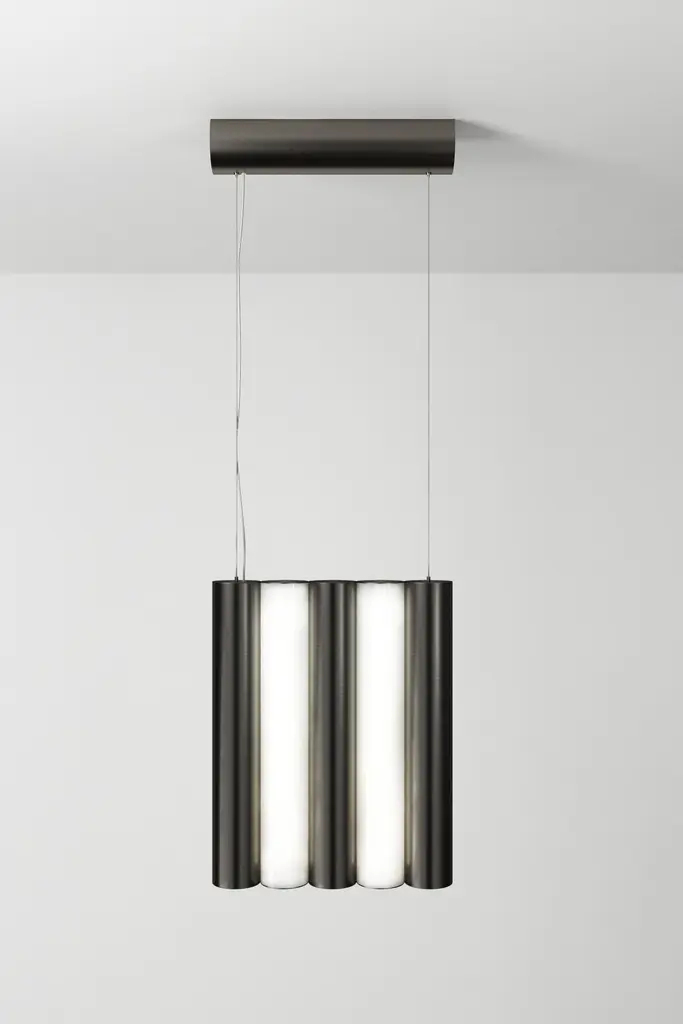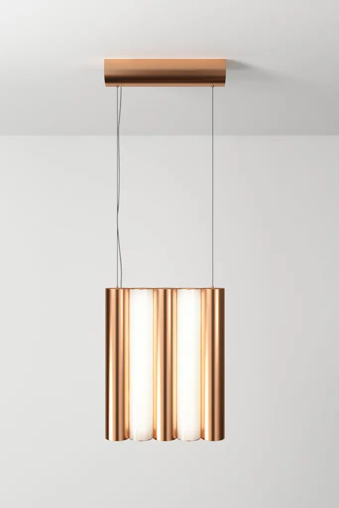 Gamma L5 Brass pendant by Sylvain WillenzDimensions: D25 x W5 X H42.3 cmMaterials: Solid brass, White Polycarbonate diffuser ,Metal cable and transparent electric cable.Others finishes and dimensions are available.All our lamps can be wired according to each country. If sold to the USA it will be wired for the USA for instance.GAMMA is a striking and versatile lighting system.The design of this collection is based on the multiplication of metal tubes and opal white luminous cylinders, assembled like a chain.CVL Luminaires, a company located in the Loire Valley, has more than five decades of experience in the design and manufacture of luminaires.The company ensures 100% French manufacturing. On the one hand, it offers a range of modular and adaptable catalog products, and on the other, it has a know-how that allows it to carry out fully customized projects.Your asset: flexibility. The factory allows production from one unit to another. In addition, the CVL team supports you in product development: study, design, standardization and production.