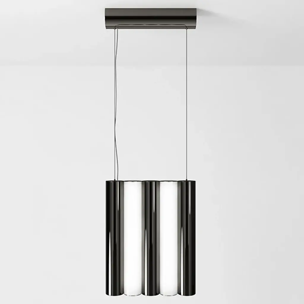 Expand your indoor spaces with the smooth lines of the Gamma L5 LED Pendant from CVL Luminaires. An elegantly simple fixture fabricated in France, it uses a single cylinder set on its side as a canopy to suspends a line of vertical cylinders below, interspersing solid brass forms with translucent polycarbonate frames that conceal robust LEDs beneath their surfaces. This potent lamping pours out around each shade, simultaneously slightly constrained by and reflecting off their solid-surfaced neighbors to create a stylish whole.
