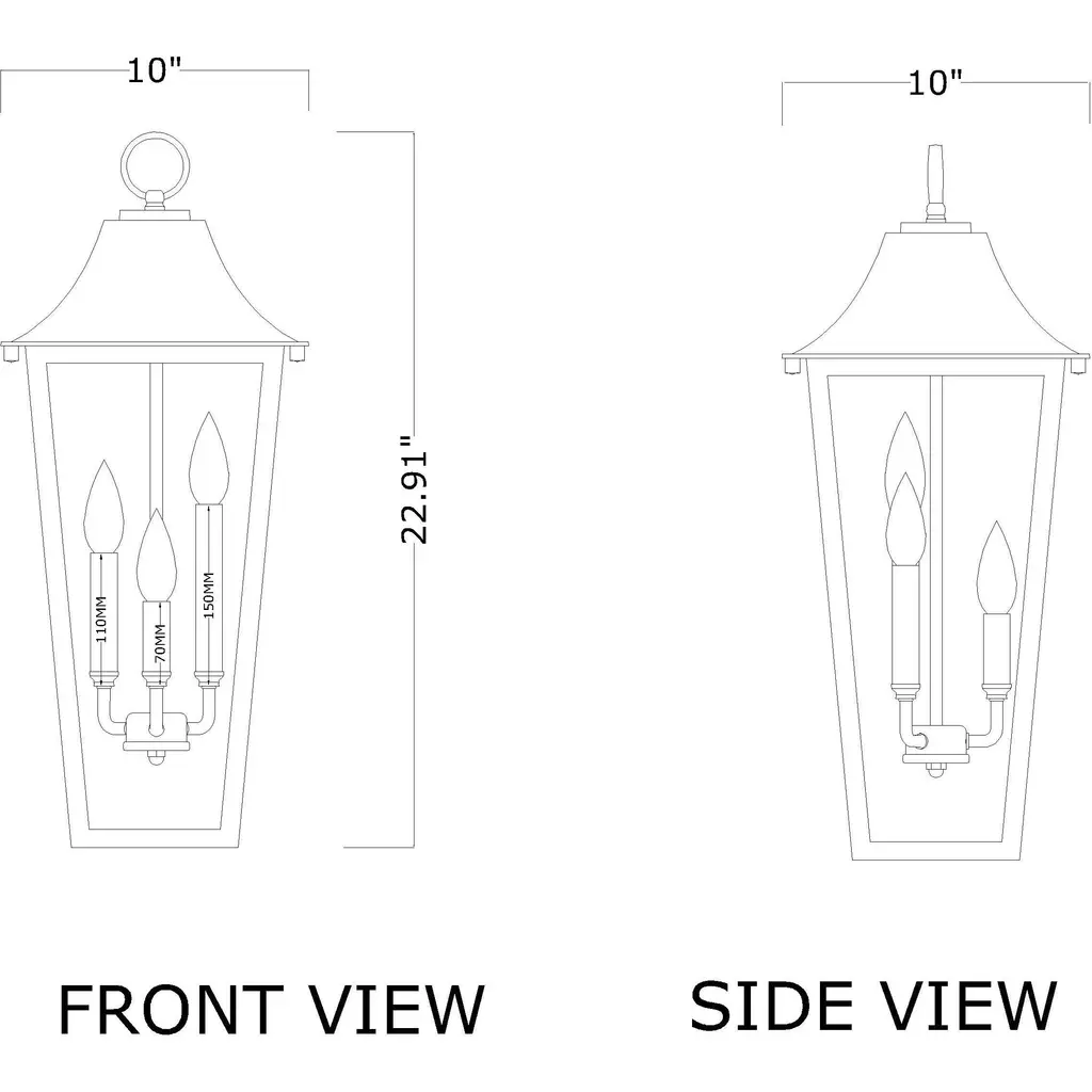 Gannon 3 Light 10 Inch Black Outdoor Chain Mount Ceiling Fixture In G9