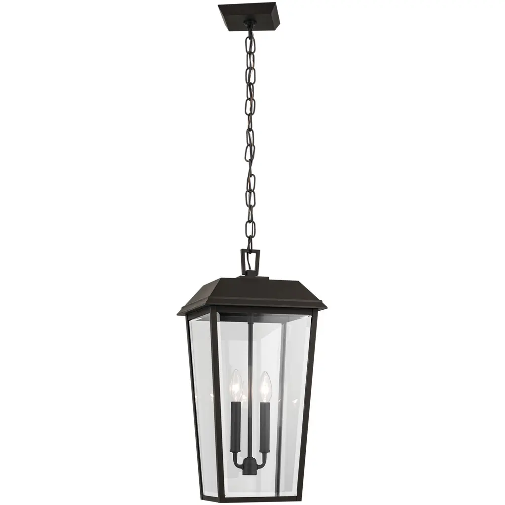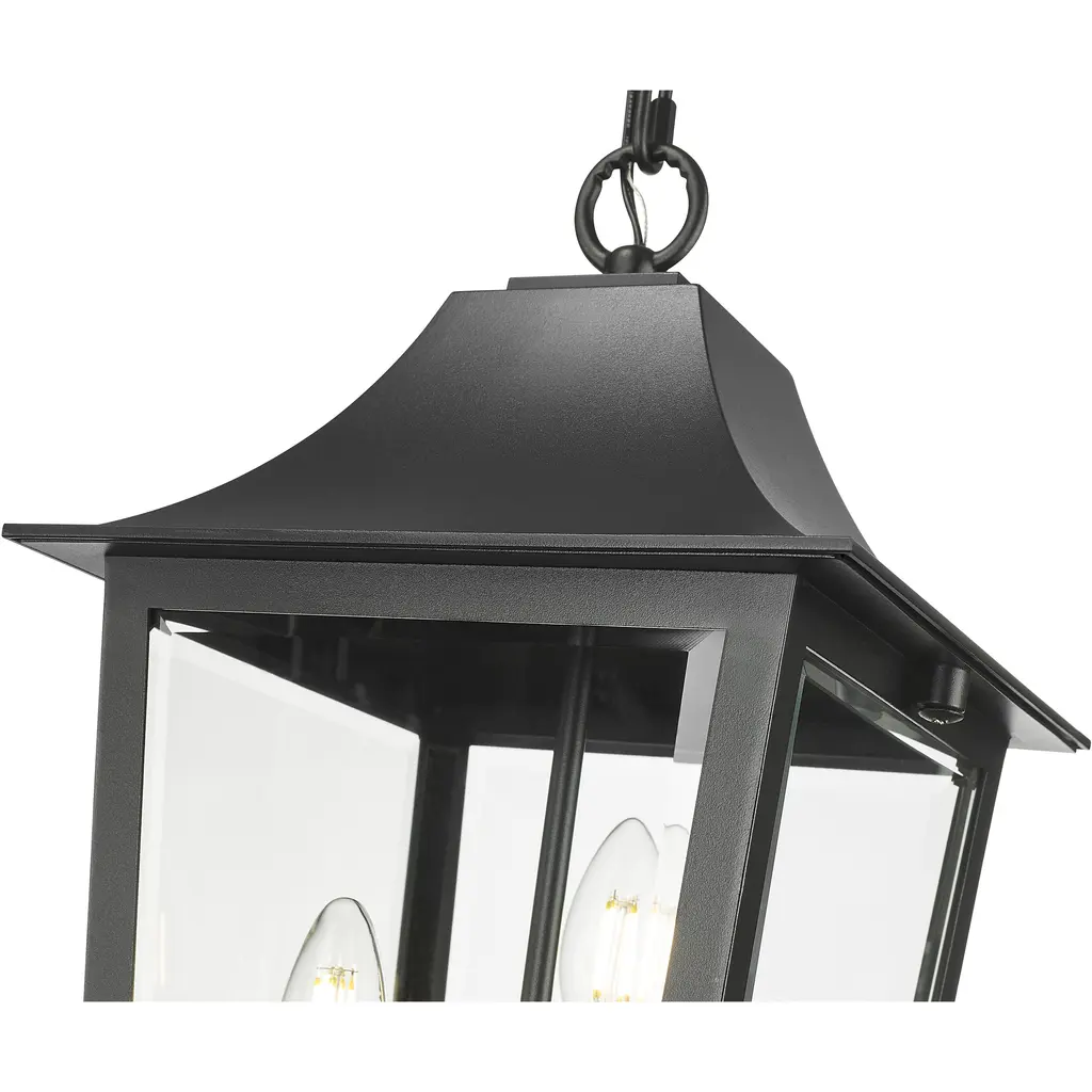 Sleek, long lines bring stellar style to a traditional three-light outdoor hanging light. It's a timeless lantern profile complete with a durable Coastal black finish over stainless steel and clear beveled glass panes for excellent illumination. This striking fixture is the perfect solution over a front entry or dressing up an exterior living space.