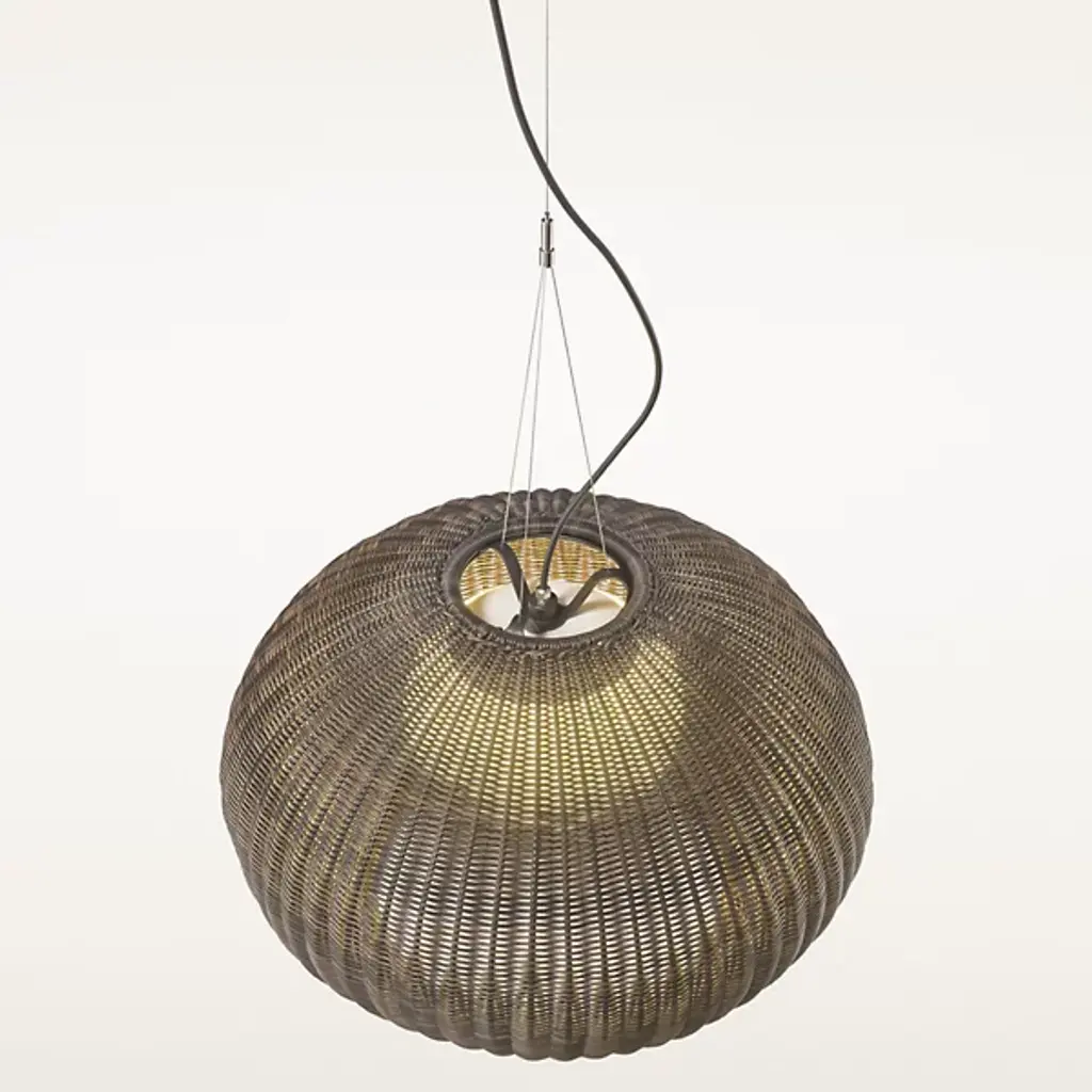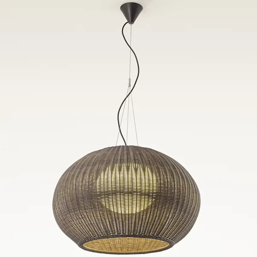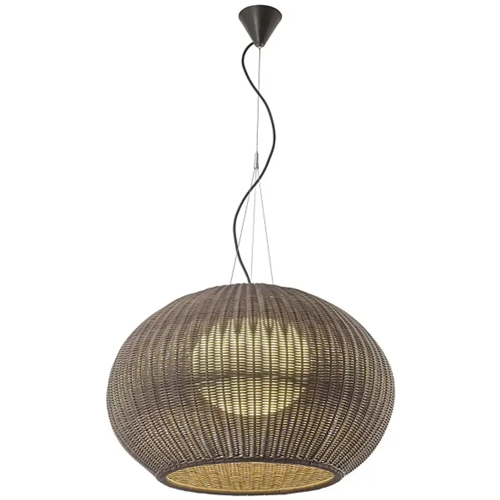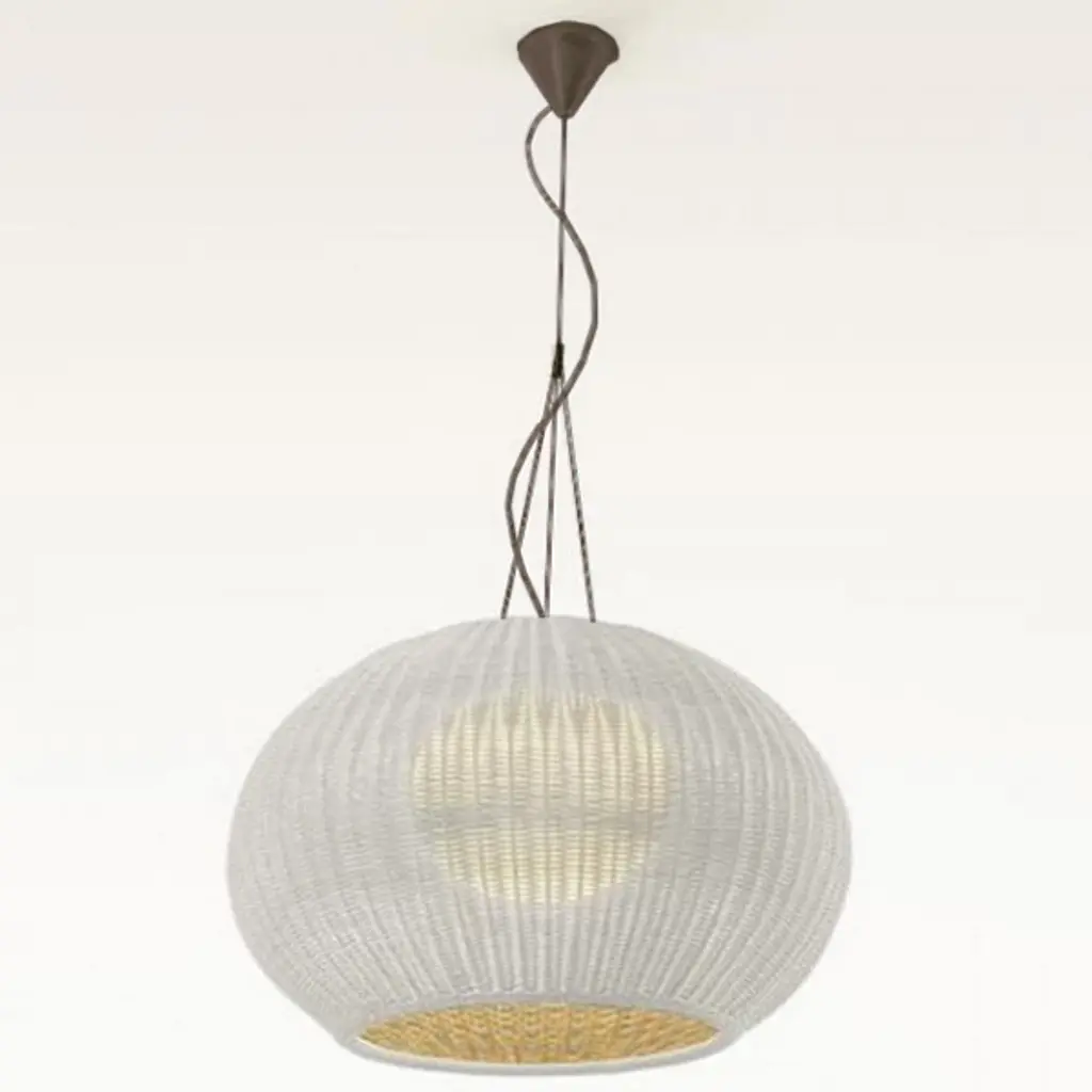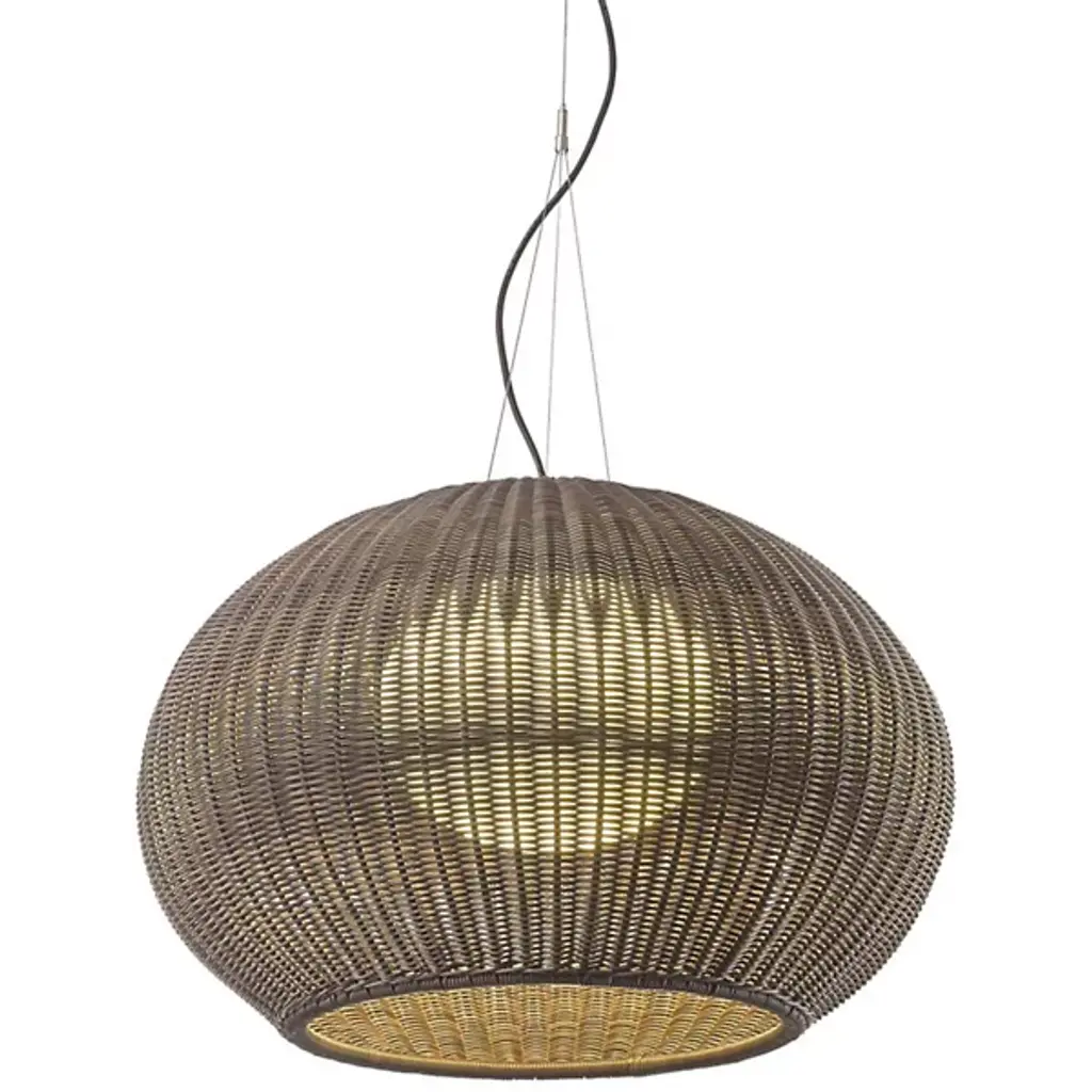 Designed to withstand the elements in style, the Bover Garota 02 Outdoor Pendant features a large woven synthetic shade surrounding a polyethylene globe diffuser. The rounded shell is precisely wrapped with a vertical trending pattern like natural wicker, comfortably diffusing the brightness of the center. Provided with water-resistant cord and UV protection for the frosted inner orb, the pendant is safe-guarded against all types of weather conditions, guaranteeing longevity of the design in any outdoor environment.