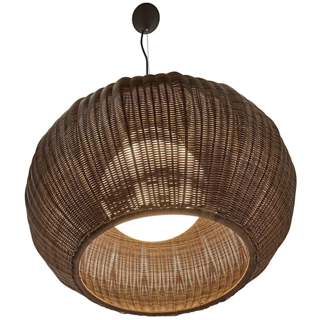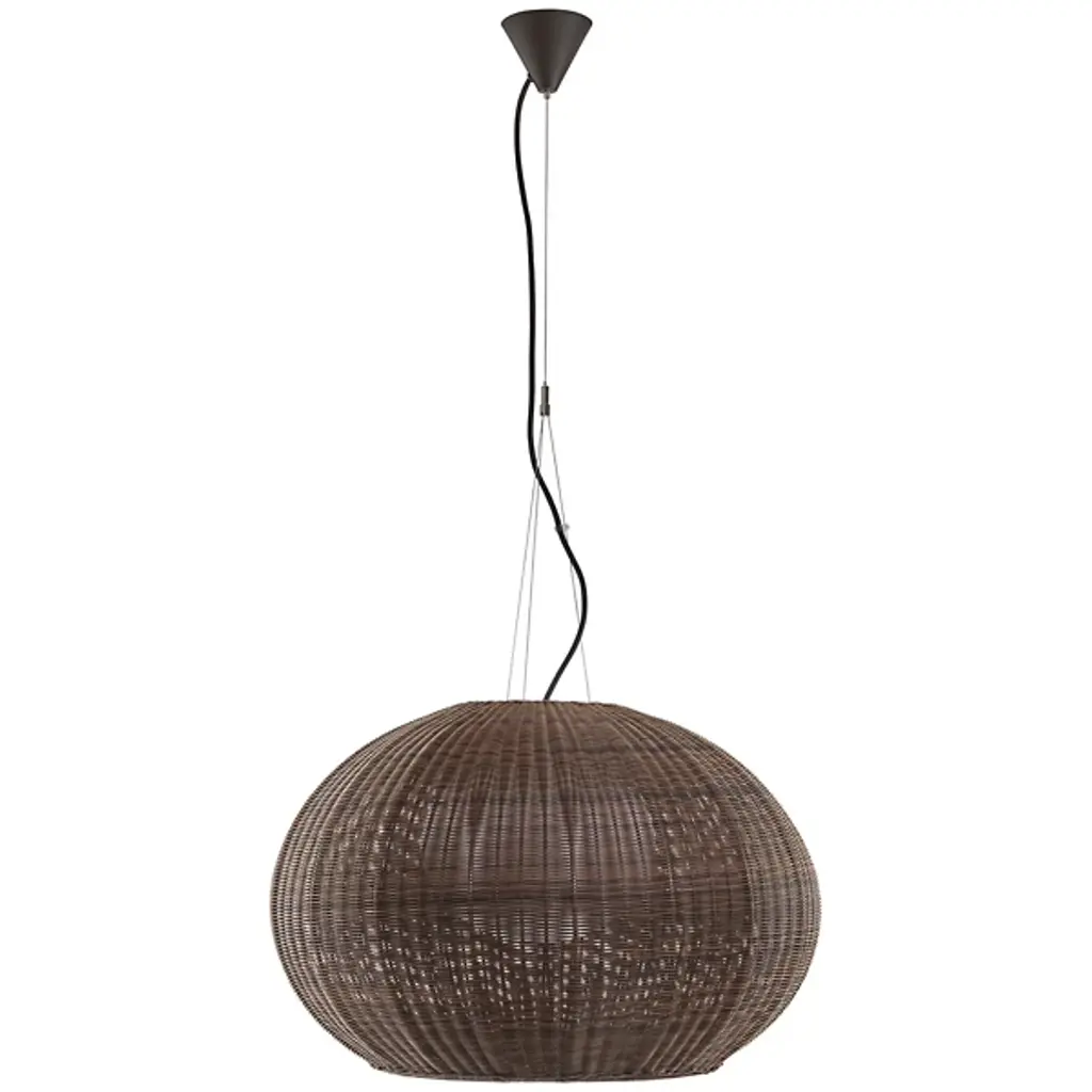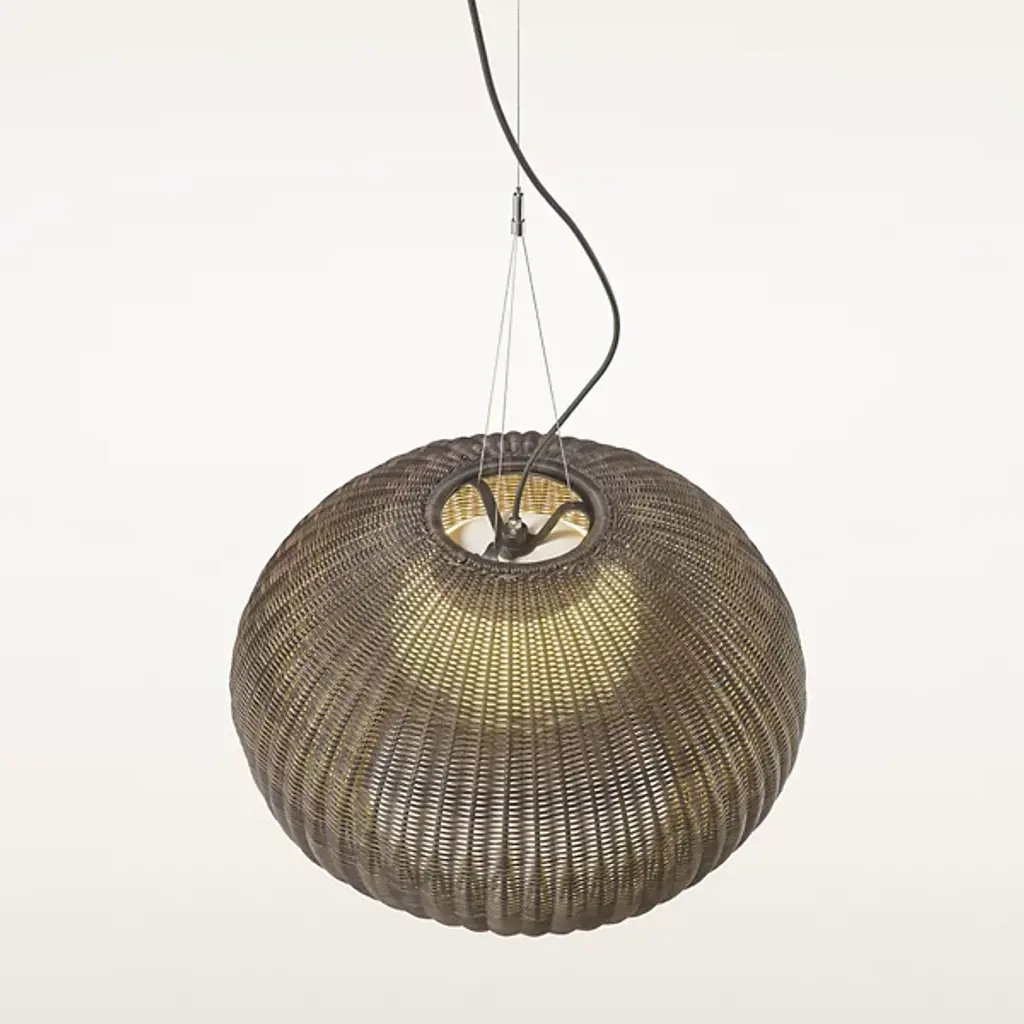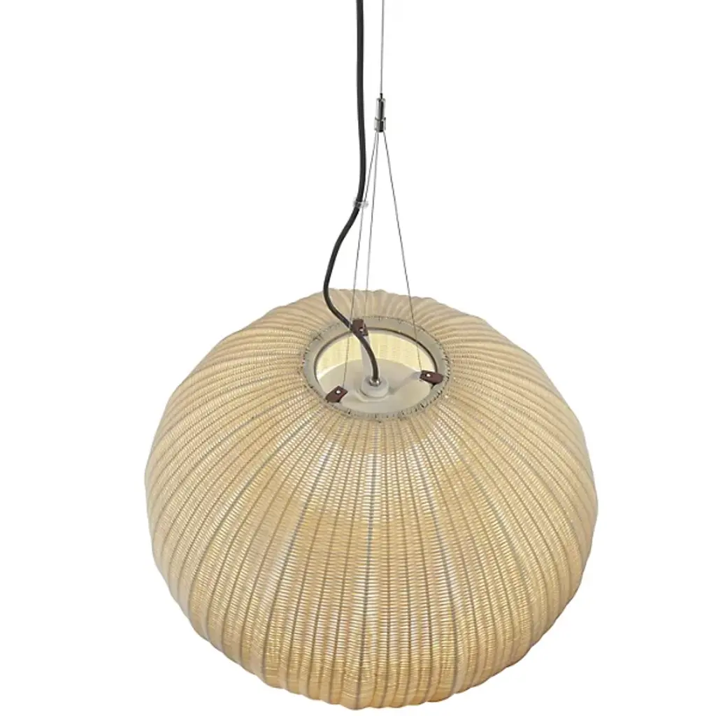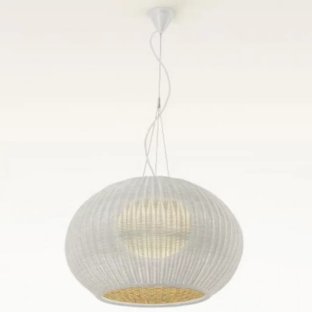 Designed to withstand the elements in style, the Bover Garota 02 Outdoor Pendant features a large woven synthetic shade surrounding a polyethylene globe diffuser. The rounded shell is precisely wrapped with a vertical trending pattern like natural wicker, comfortably diffusing the brightness of the center. Provided with water-resistant cord and UV protection for the frosted inner orb, the pendant is safe-guarded against all types of weather conditions, guaranteeing longevity of the design in any outdoor environment.