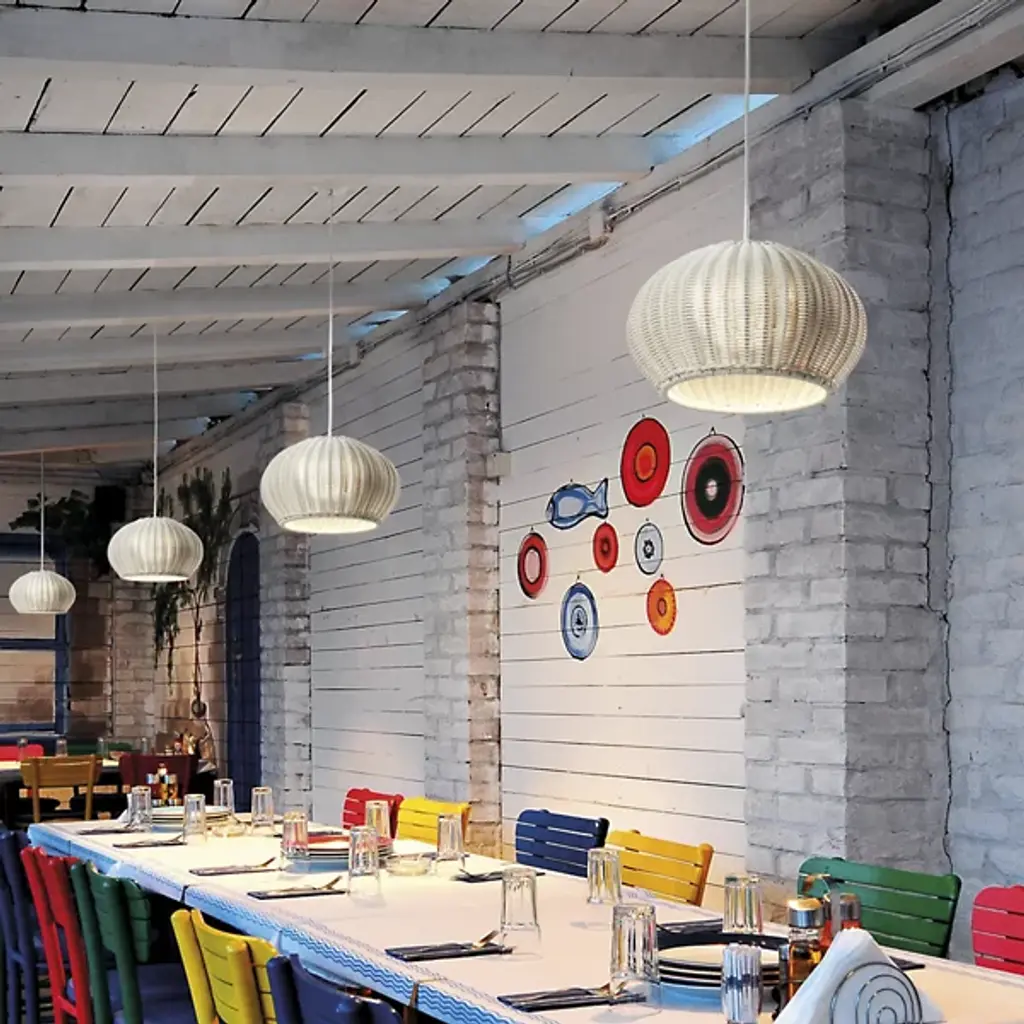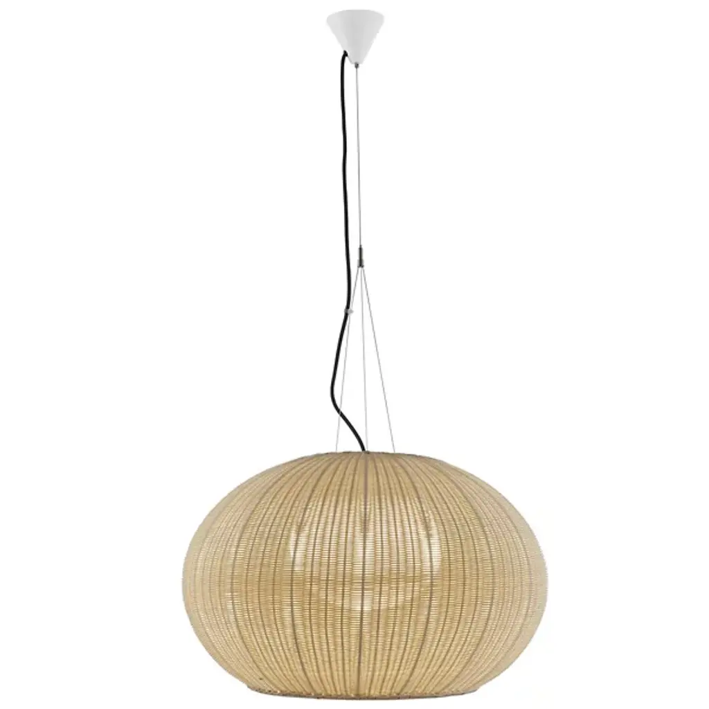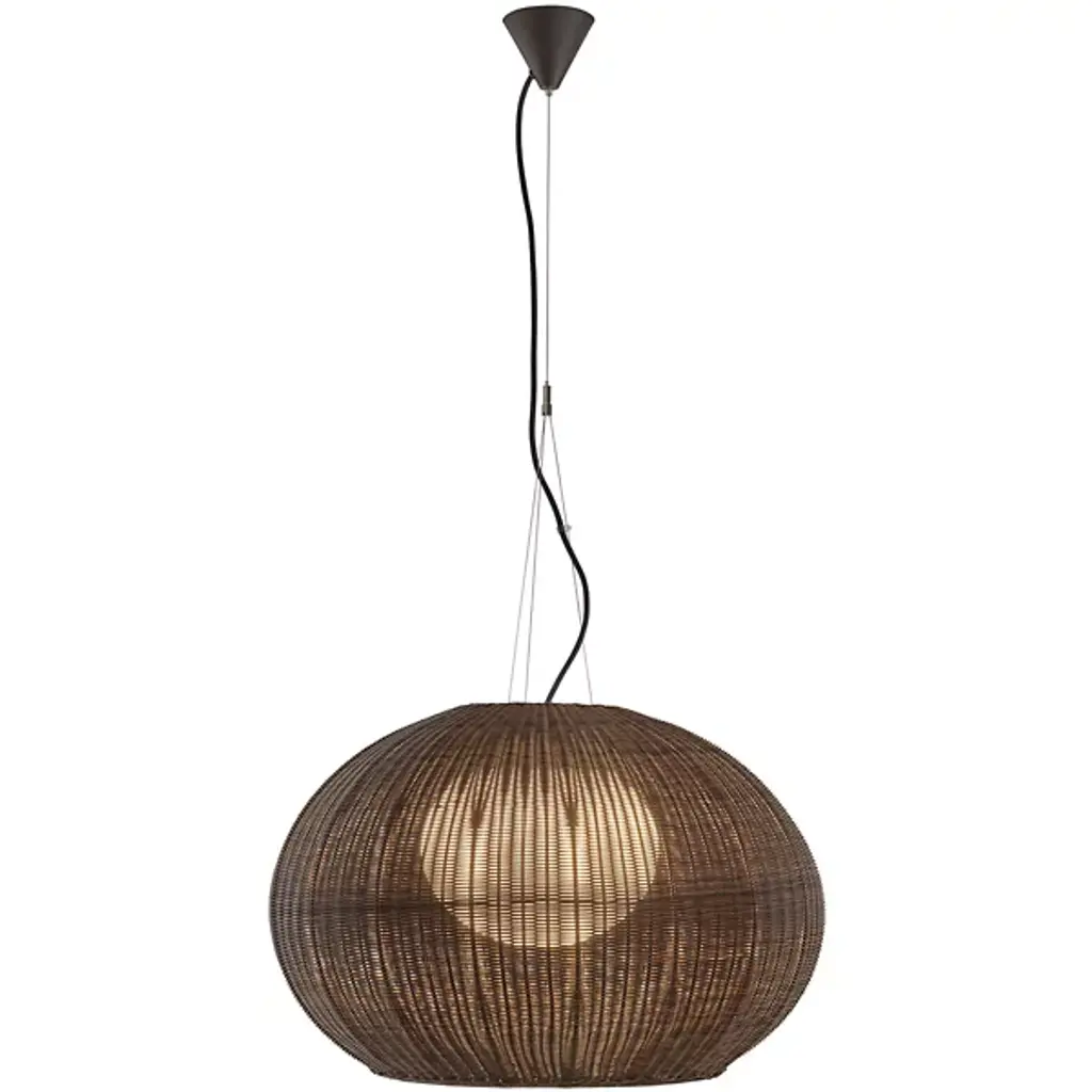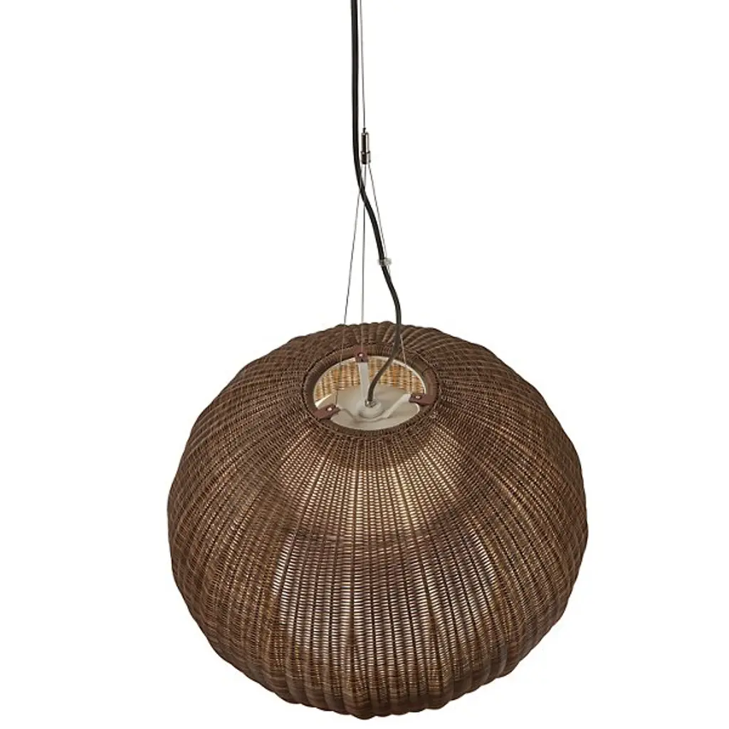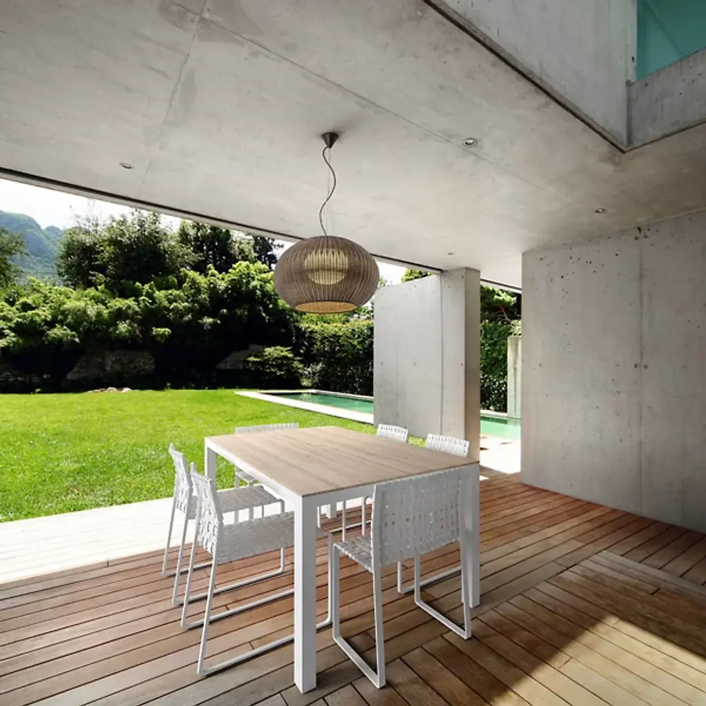 Designed to withstand the elements in style, the Bover Garota 02 Outdoor Pendant features a large woven synthetic shade surrounding a polyethylene globe diffuser. The rounded shell is precisely wrapped with a vertical trending pattern like natural wicker, comfortably diffusing the brightness of the center. Provided with water-resistant cord and UV protection for the frosted inner orb, the pendant is safe-guarded against all types of weather conditions, guaranteeing longevity of the design in any outdoor environment.