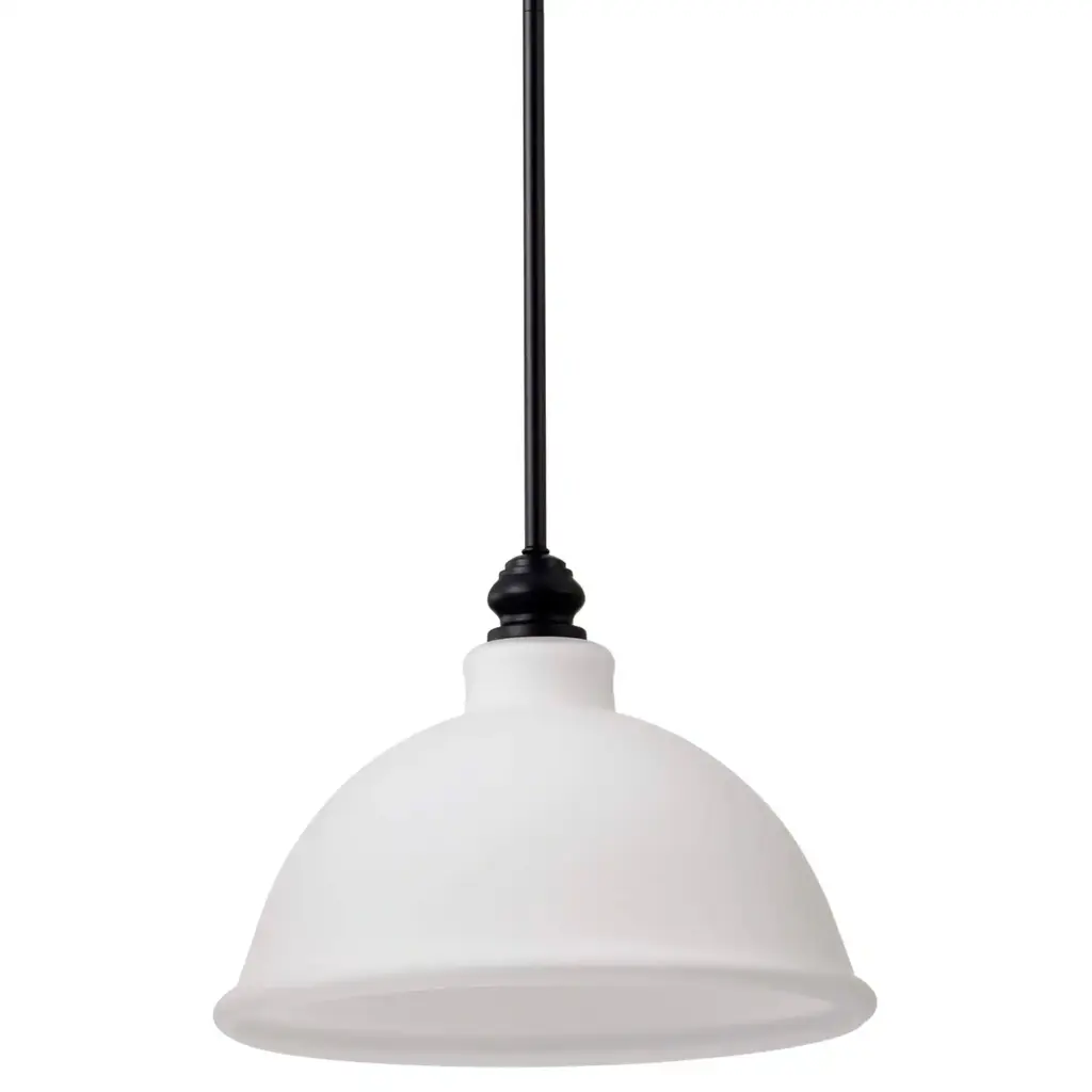 The clean lines of a domed glass diffuser topped with a vintage metal cap finished in subtle matte black give a nostalgic look to the Garris Collection. A simple cord suspension and a etched glass shade offers a stylish modern touch to transitional and modern farmhouse interiors. Install singly or in multiples to providesp task illumination to kitchen islands, bars and bedrooms.
