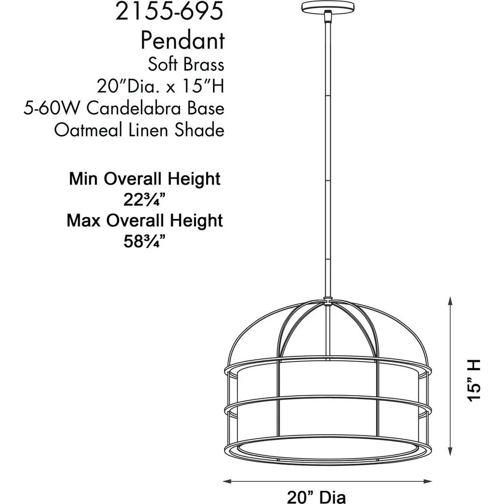 Gateway Park 5 Light 20 Inch Soft Brass Convertible Pendant / Semi Flush Ceiling Light