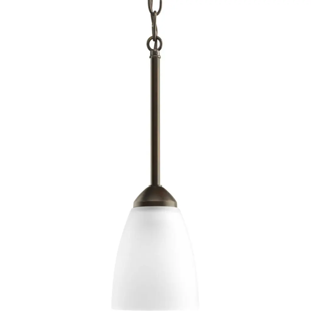 Gather possesses a smart simplicity to complement today's home. This one-light mini-pendant contains etched glass shades which add distinction and provide pleasing illumination to your room. Complimented by a Antique Bronze finish.