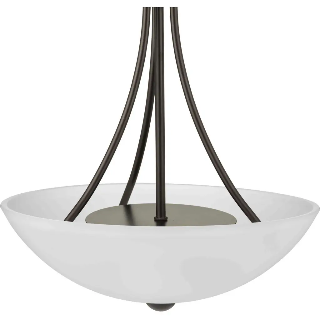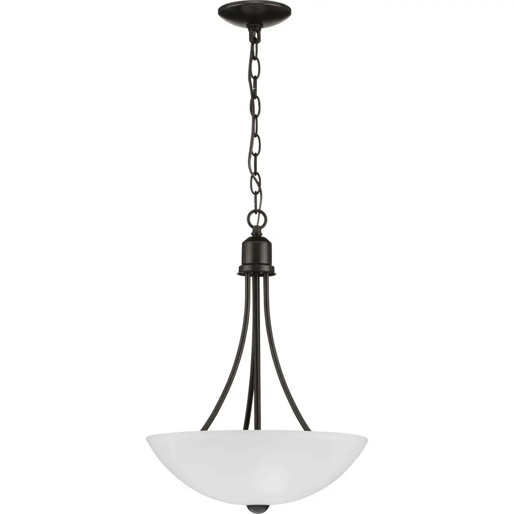 Gather possesses a smart simplicity to complement today's home. This two-light inverted pendant contains etched glass shades which add distinction and provide pleasing illumination to your room. Featuring a glamorous Antique Bronze finished frame, this collection allows you to decorate an entire home with confidence and style.