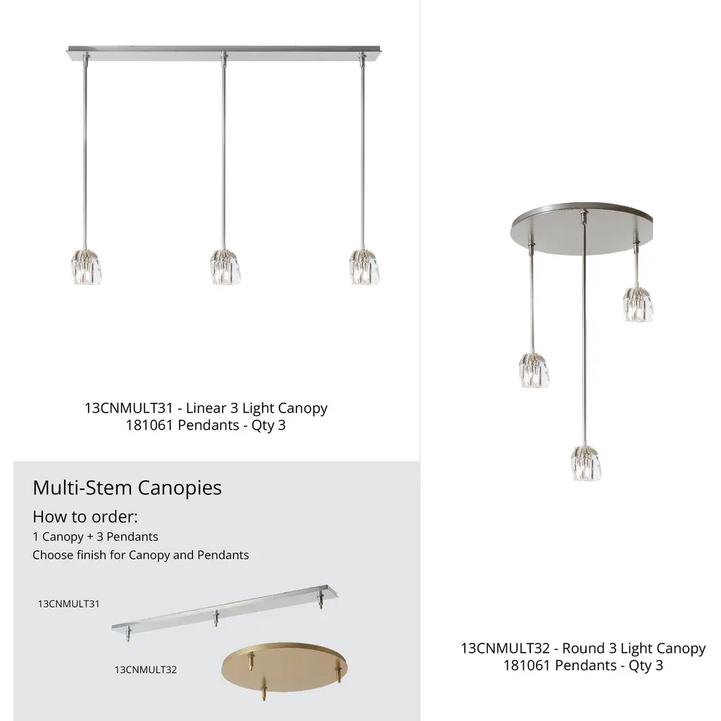 The Gatsby Mini Pendant is a simple and elegant light fixture. A single, small crystal delicately hangs from the steel multi-stem designed for height adjustability, offering a bit of luxury to any space. Hang singly over a night table or vanity, or in multiples over a kitchen island or other space for a contemporary, sophisticated style.