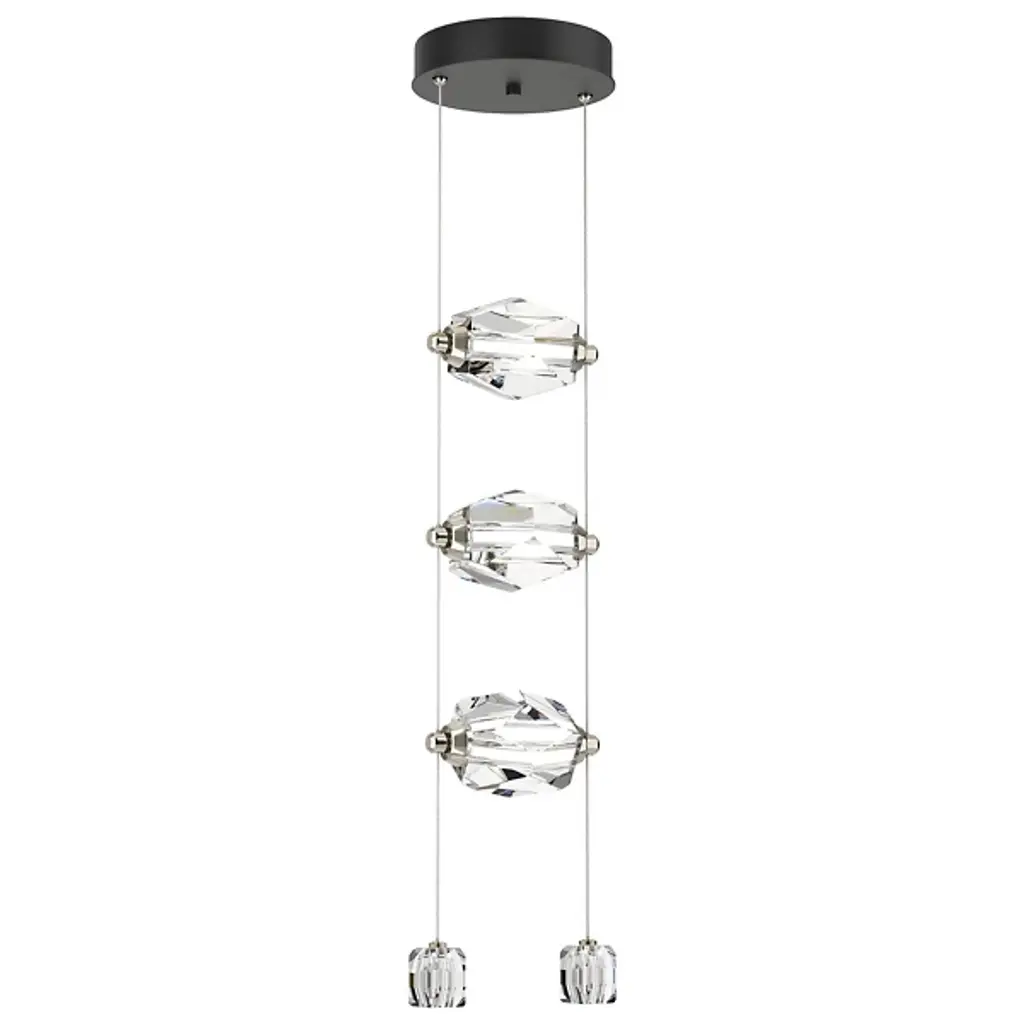 Simply beautiful. The Gatsby 3-Light LED Pendant features three, large crystals positioned horizontally between two low-voltage cables that power the LED array within. Two smaller crystals serve as endpoints for each cable, weighting them while delivering a luxurious element all the while.