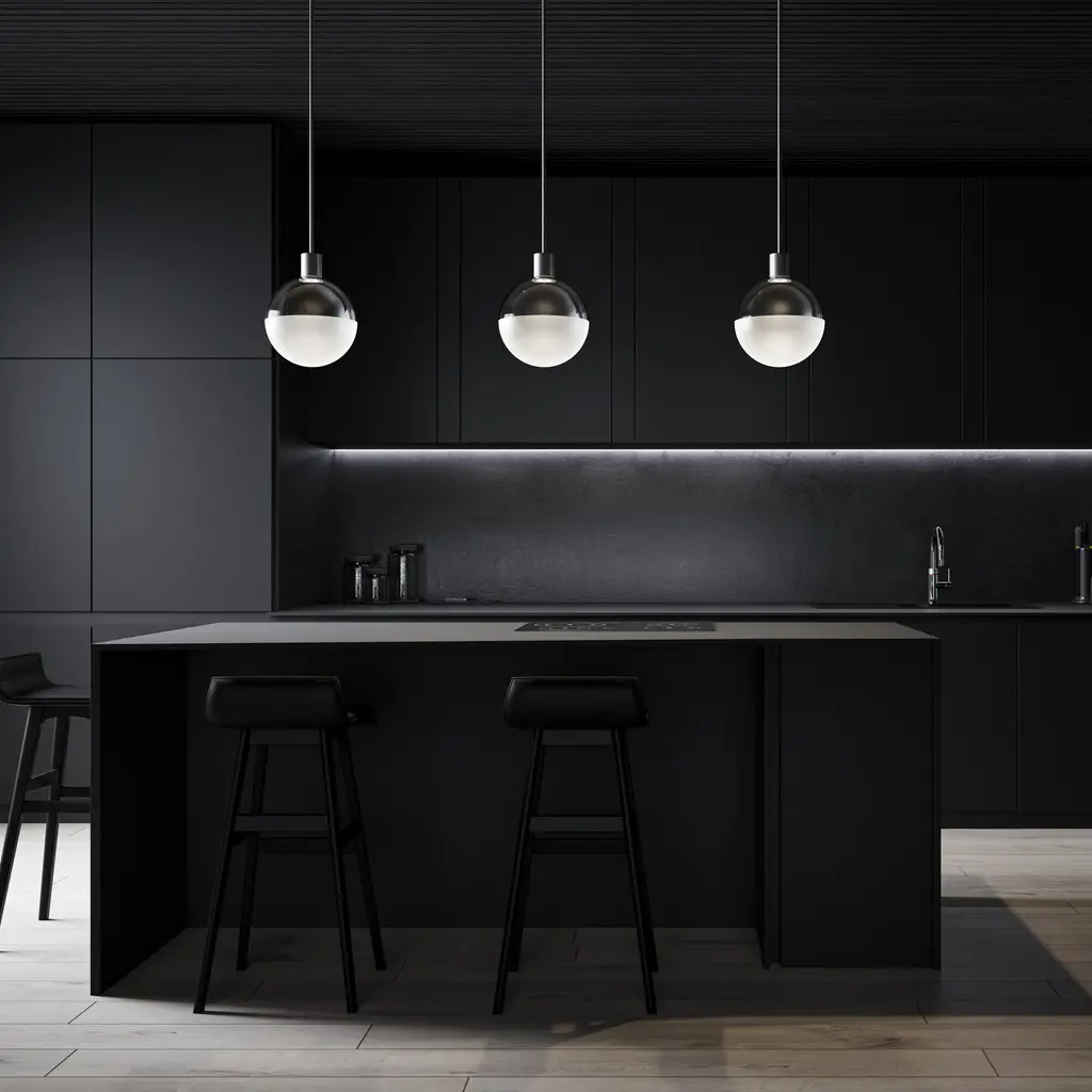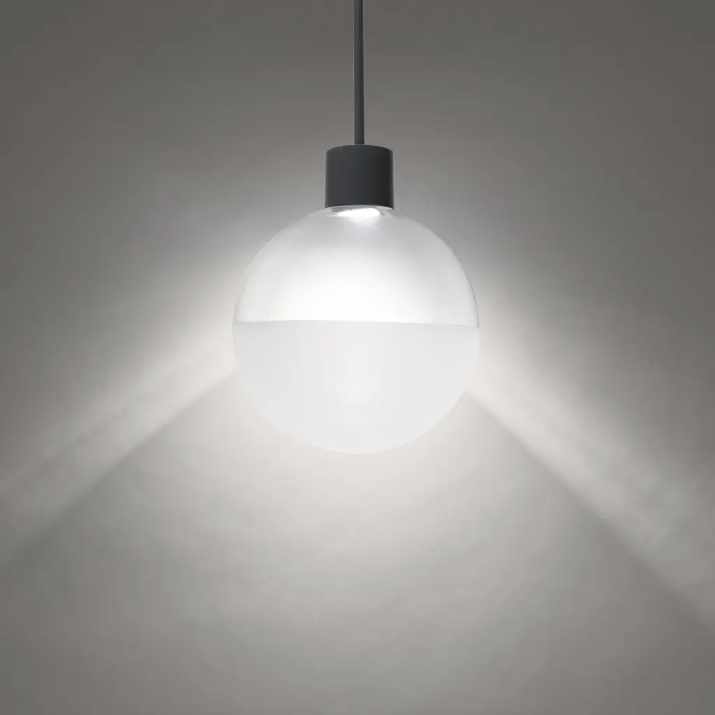 Half and half. A sphere composed of equal parts clear and frosted glass brings your home to life with a combination of bright and diffuse illumination.
