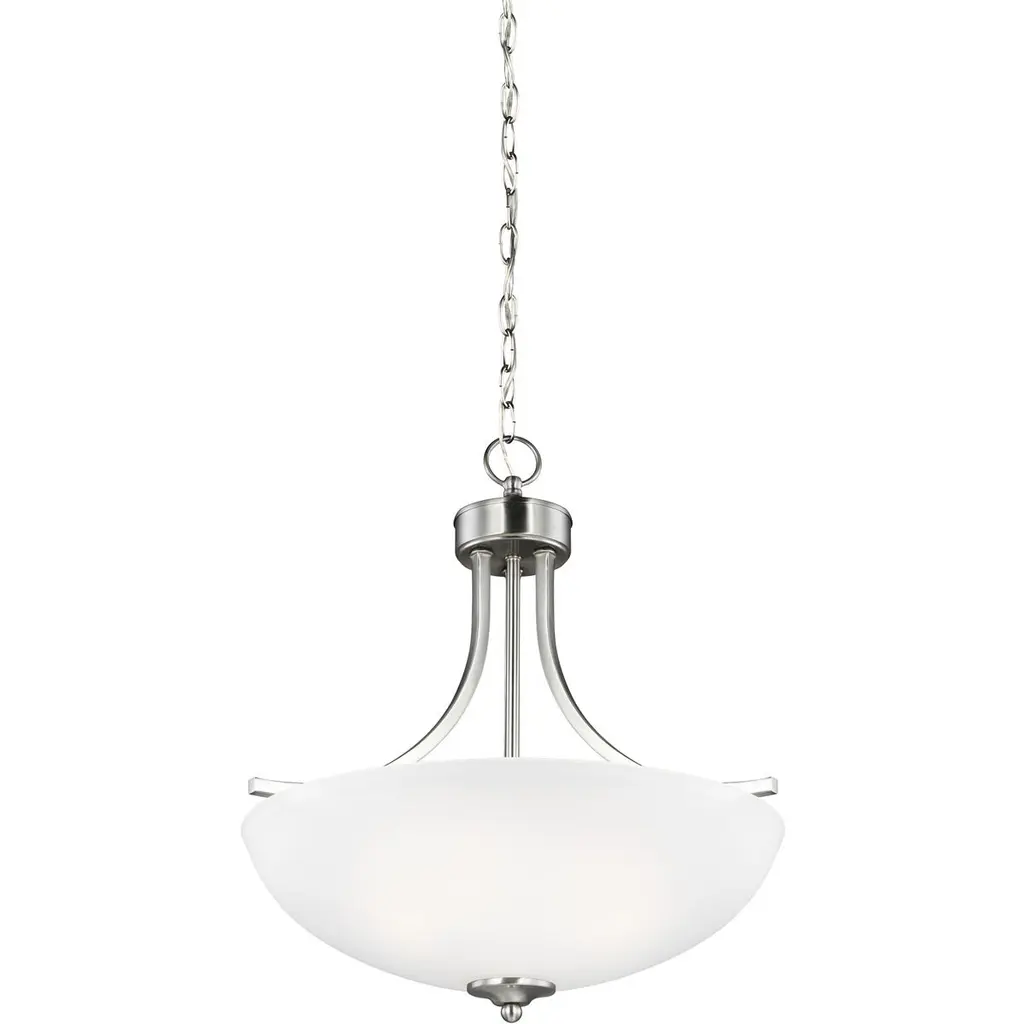 The Geary three light indoor pendant in bronze is the perfect way to achieve your desired fashion or functional needs in your home. Adaptability takes center stage with the Geary Collection. This series of traditional up-light pendants, semi-flush and flush-mount fixtures feature decoratively bowed arms and constructed of rectangular steel tubing. Geary is a true cross-collection piece, offered in four beautiful finishes Blacksmith, Brushed Nickel, Burnt Sienna and Heirloom Bronze. The Geary has a universal appeal matching 24 different interior collections. Offering subtle style with practical design, Geary is at home in almost any room. The fixtures have a fluid movement with a traditional look to complement a wide range of decor.
